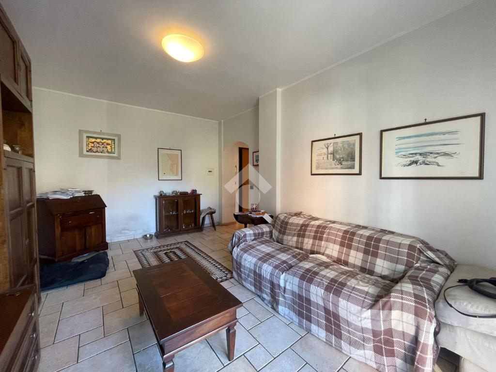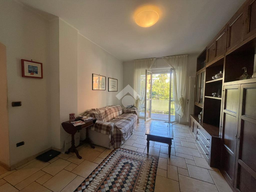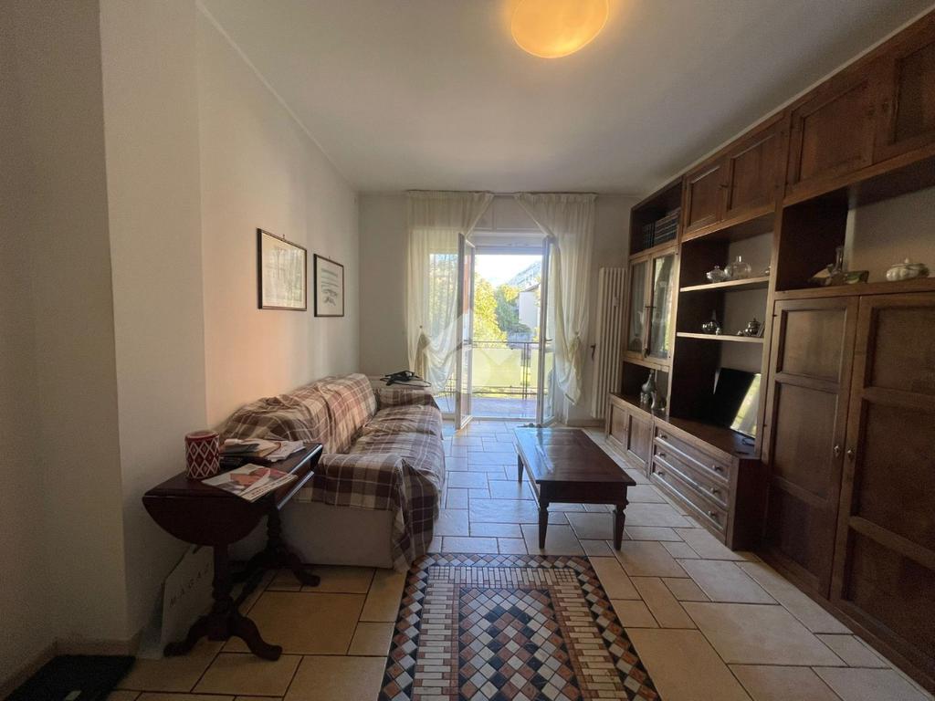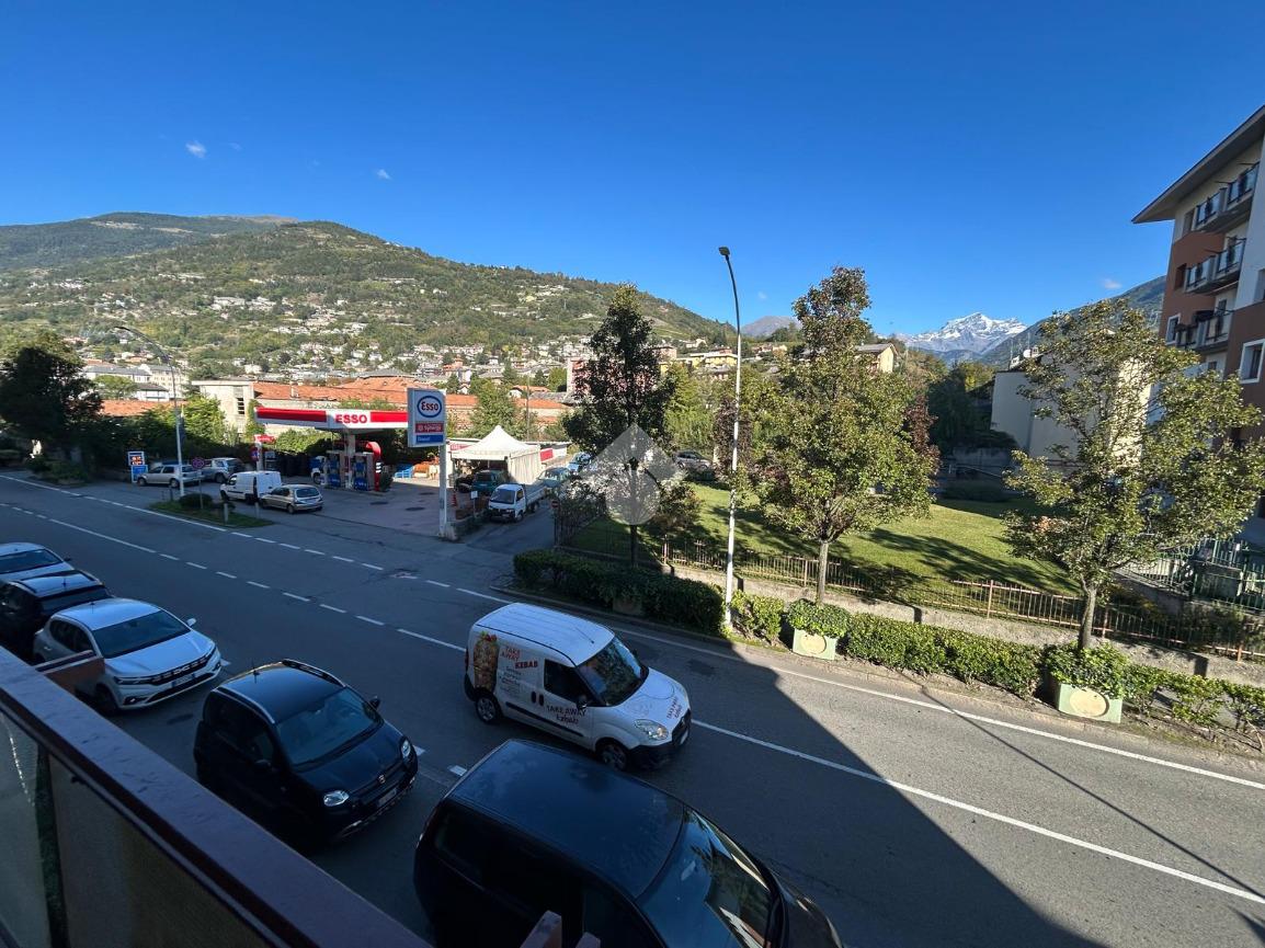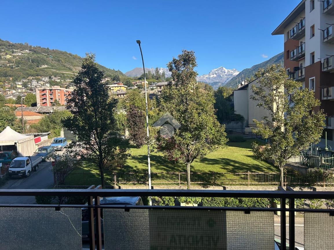 In Aosta, Viale Federico Chabod, al ridosso del centro e nelle immediate vicinanze dell'ospedale. L'immobile è al primo piano caratterizzato da un balcone. Il soggiorno è separato dalal cucina abitabile. La zona notte ospita un'ampia camera matrimoniale con cabina armadio e bagno finestrato. Completa l'immobile l'ascensore, la cantina e un balcone ad uso esclusivo della casa posto al piano rialzato.