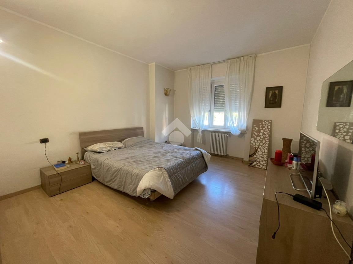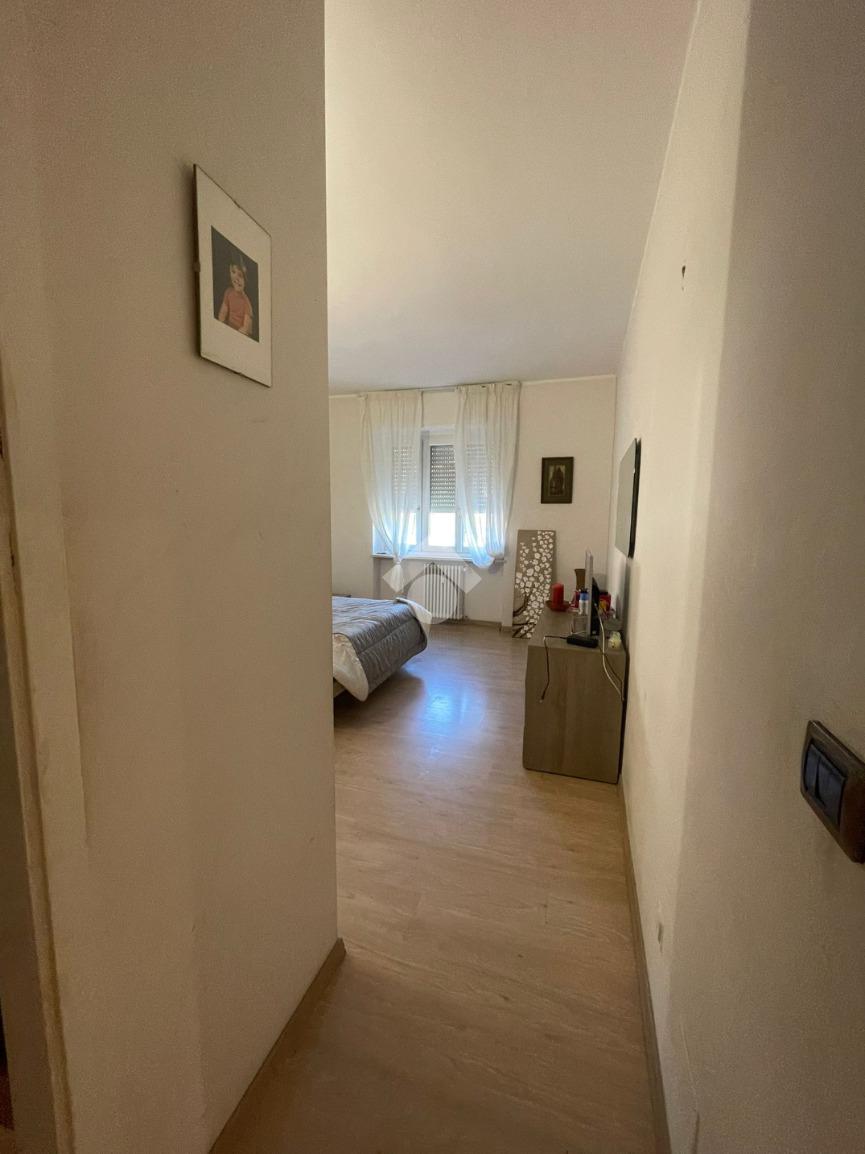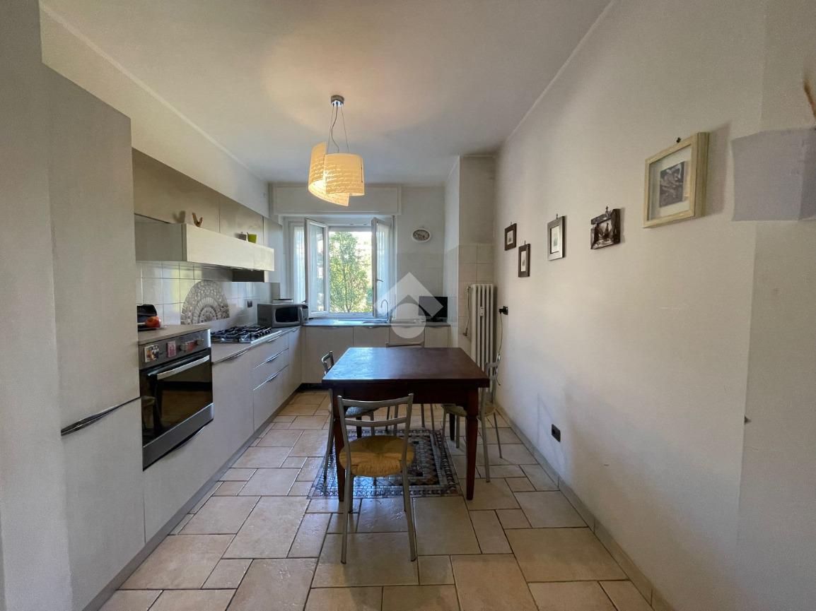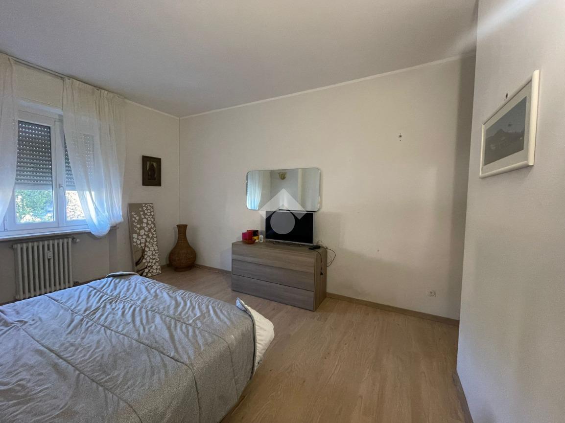 In Aosta, Viale Federico Chabod, al ridosso del centro e nelle immediate vicinanze dell'ospedale. L'immobile è al primo piano caratterizzato da un balcone. Il soggiorno è separato dalal cucina abitabile. La zona notte ospita un'ampia camera matrimoniale con cabina armadio e bagno finestrato. Completa l'immobile l'ascensore, la cantina e un balcone ad uso esclusivo della casa posto al piano rialzato.