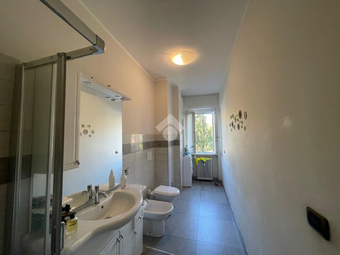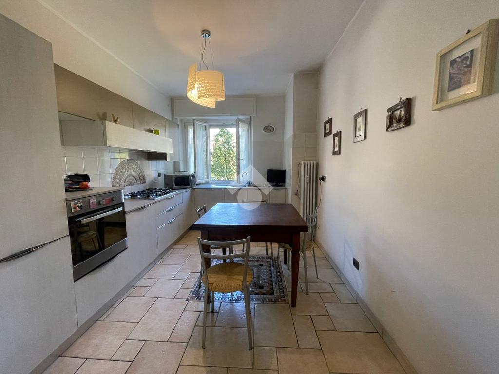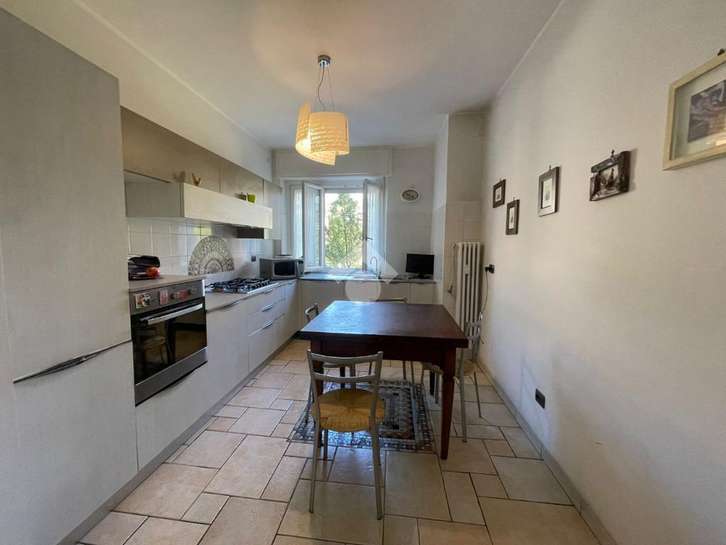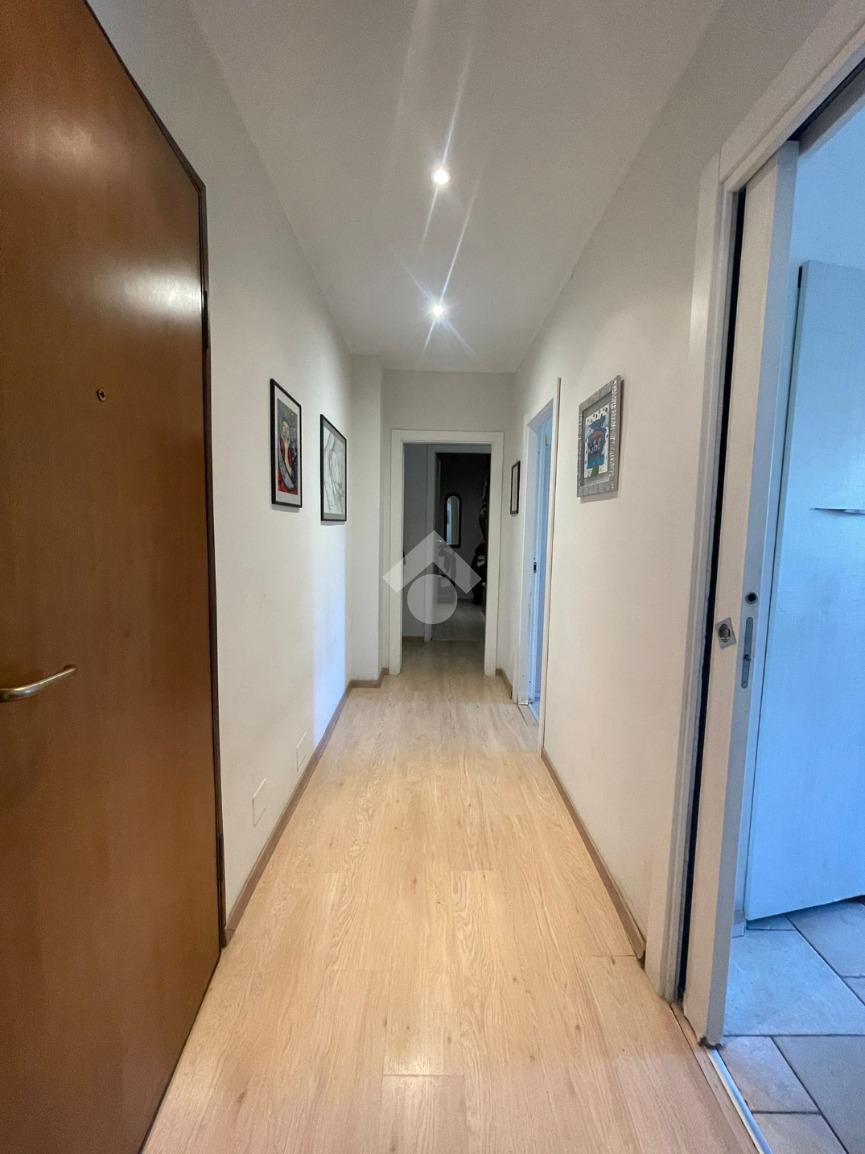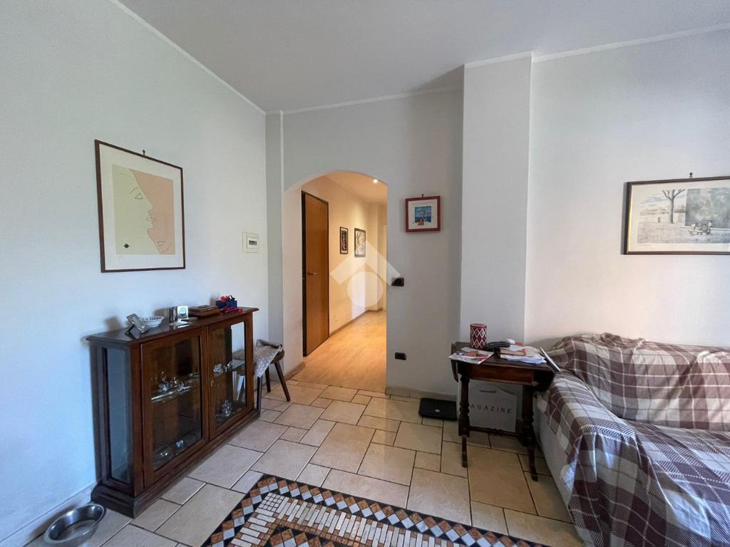 In Aosta, Viale Federico Chabod, al ridosso del centro e nelle immediate vicinanze dell'ospedale. L'immobile è al primo piano caratterizzato da un balcone. Il soggiorno è separato dalal cucina abitabile. La zona notte ospita un'ampia camera matrimoniale con cabina armadio e bagno finestrato. Completa l'immobile l'ascensore, la cantina e un balcone ad uso esclusivo della casa posto al piano rialzato.