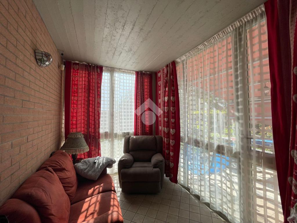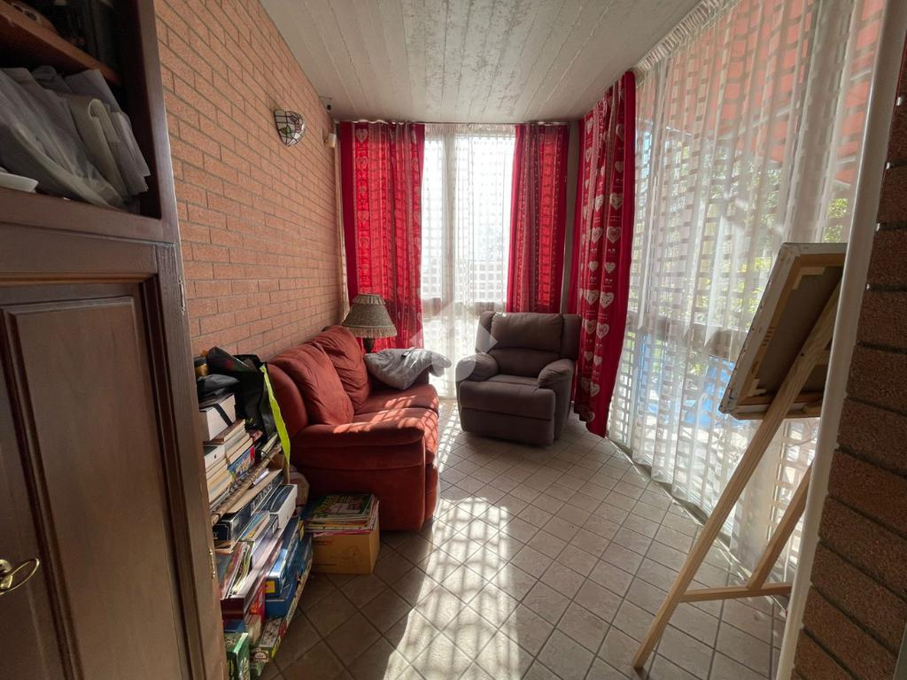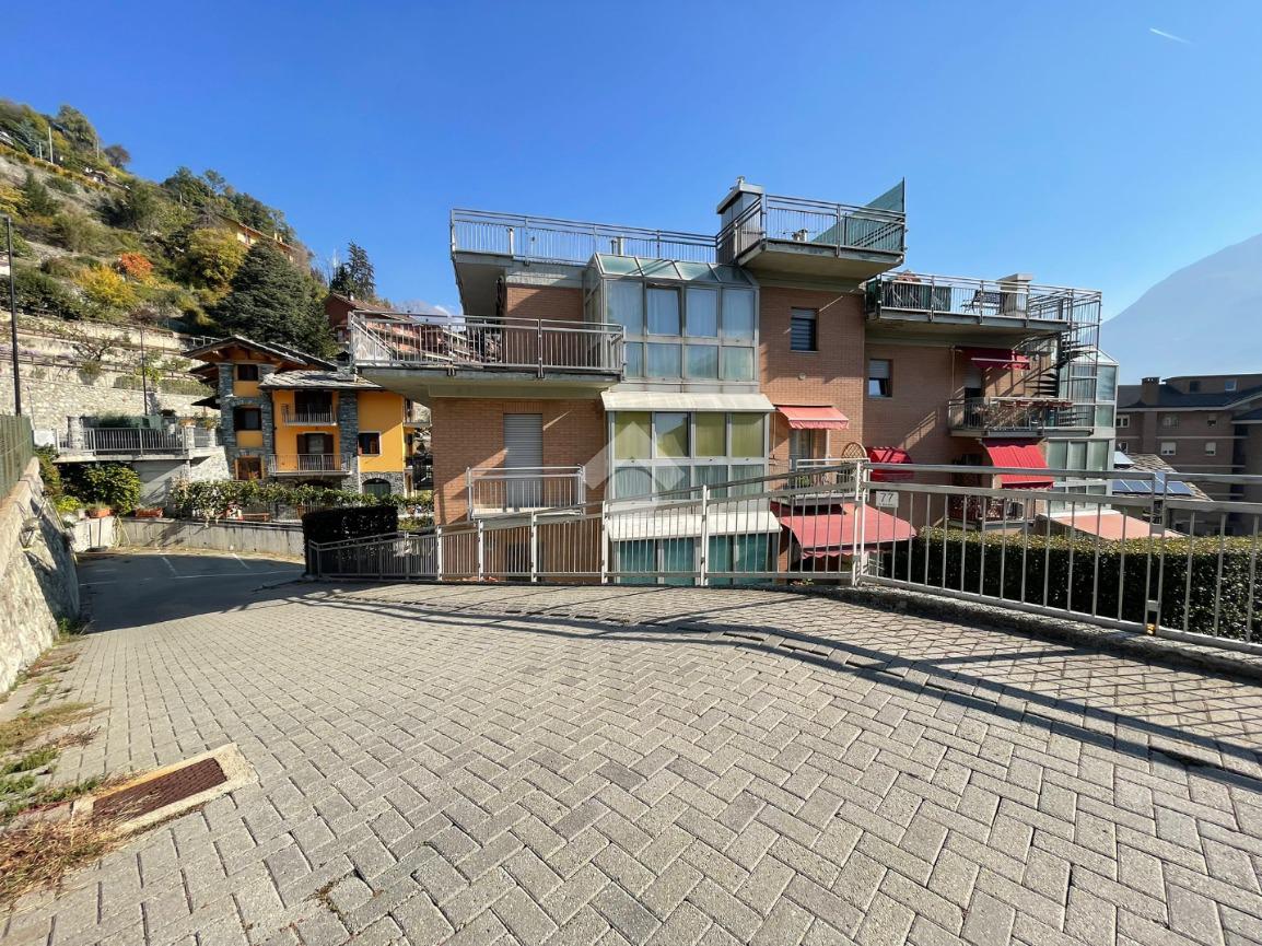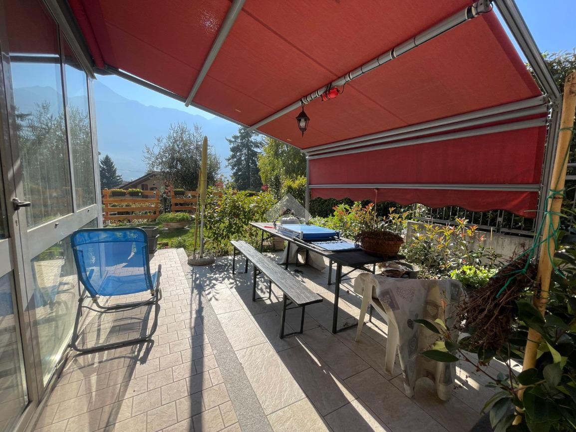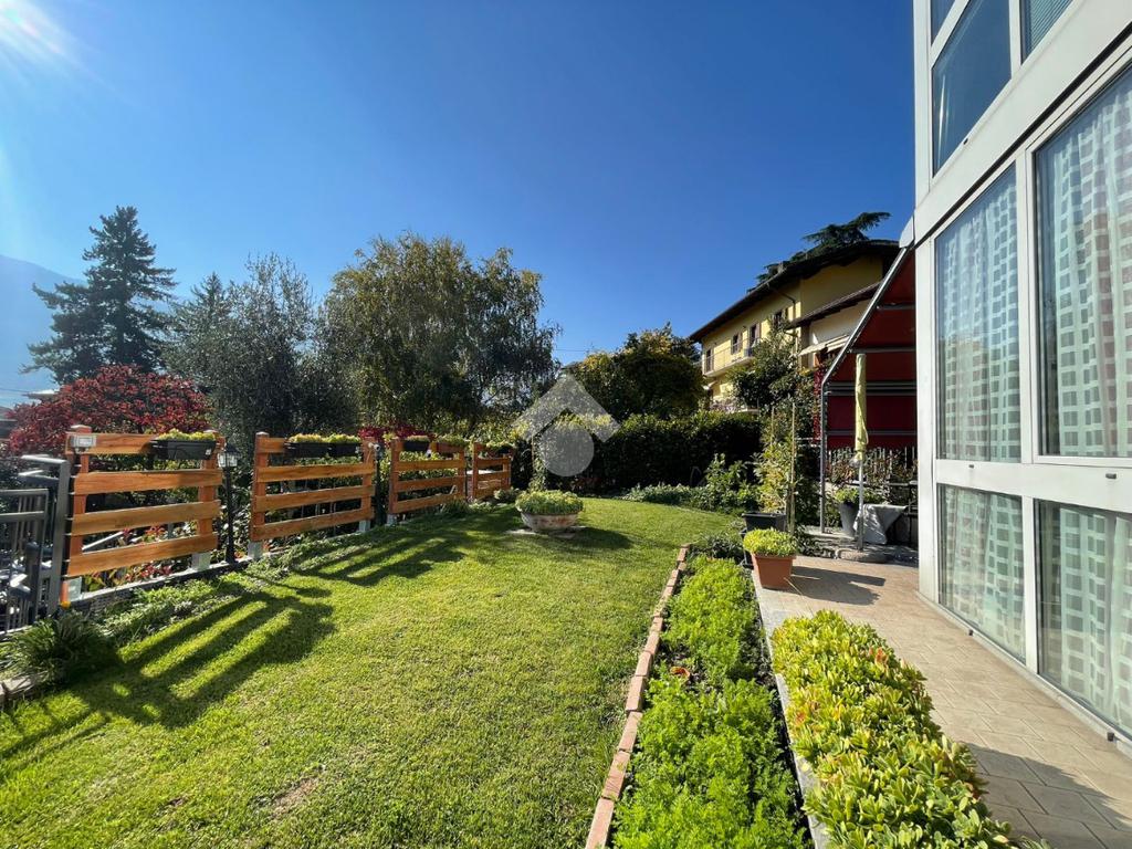 Aosta, Via delle Betulle, in zona panoramica e soleggiata. L'alloggio è in un contesto di 7 unità abitative costruito nel 2008. L'alloggio è al piano terra con area verde ad uso esclusivo. Il soggiorno è unito alla cucina con l'uscita diretta sull'area verde con terrazzino e orto a sud-ovest. Dalla zona giorno si accede alla serra bioclimatica adibita a soggiorno a vista sul giaridno. La zona notte ospita una camera matrimoniale con cabina armadio e con l'uscita diretta sul giardino a sud. La seconda camera ha l'uscita sul balcone a est e il bagno con doppio lavabo e ampia doccia. Completa l'unità tre posti auto doppi con colonnina elettrica privata, box auto di 28 mq con all'interno l'attacco alla colonnina elettrica. Il riscaldamento è autonomo a metano. Le spese condominiali sono pari a 1500,00€.