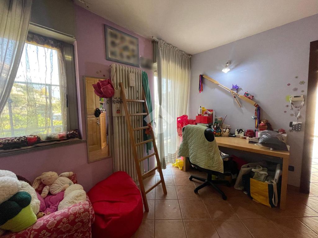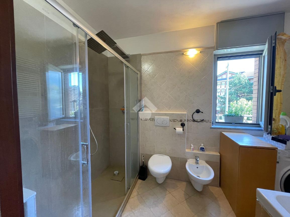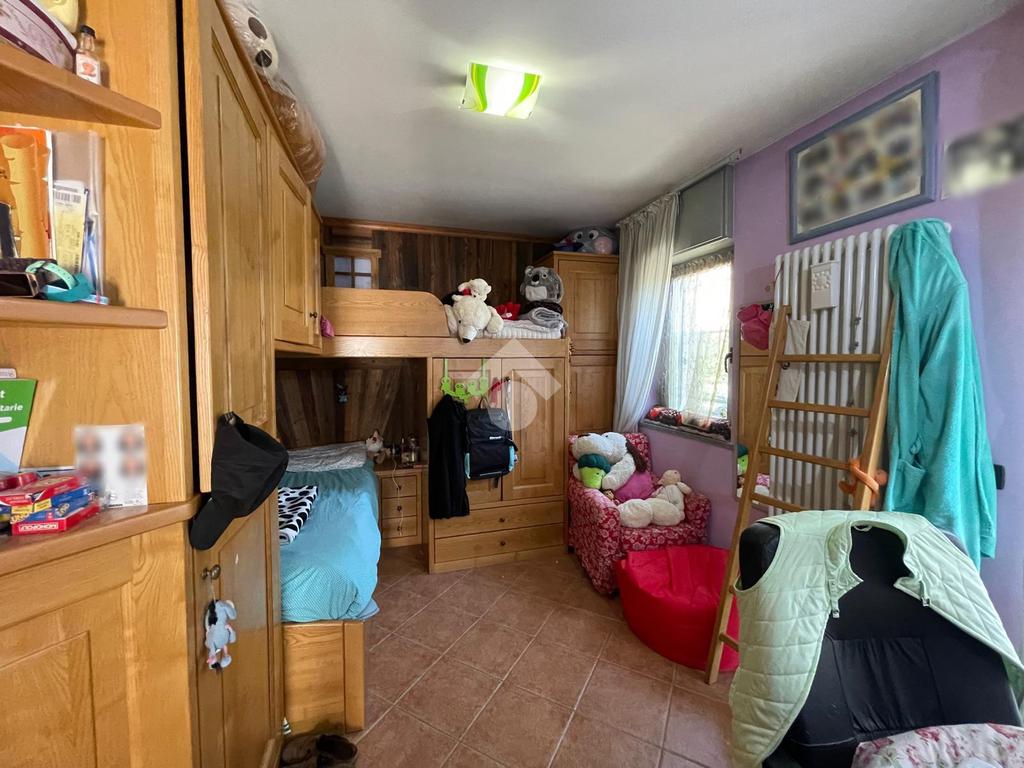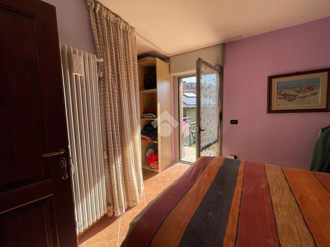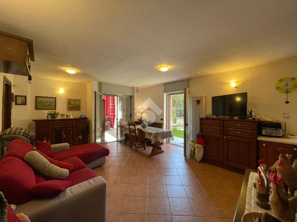 Aosta, Via delle Betulle, in zona panoramica e soleggiata. L'alloggio è in un contesto di 7 unità abitative costruito nel 2008. L'alloggio è al piano terra con area verde ad uso esclusivo. Il soggiorno è unito alla cucina con l'uscita diretta sull'area verde con terrazzino e orto a sud-ovest. Dalla zona giorno si accede alla serra bioclimatica adibita a soggiorno a vista sul giaridno. La zona notte ospita una camera matrimoniale con cabina armadio e con l'uscita diretta sul giardino a sud. La seconda camera ha l'uscita sul balcone a est e il bagno con doppio lavabo e ampia doccia. Completa l'unità tre posti auto doppi con colonnina elettrica privata, box auto di 28 mq con all'interno l'attacco alla colonnina elettrica. Il riscaldamento è autonomo a metano. Le spese condominiali sono pari a 1500,00€.