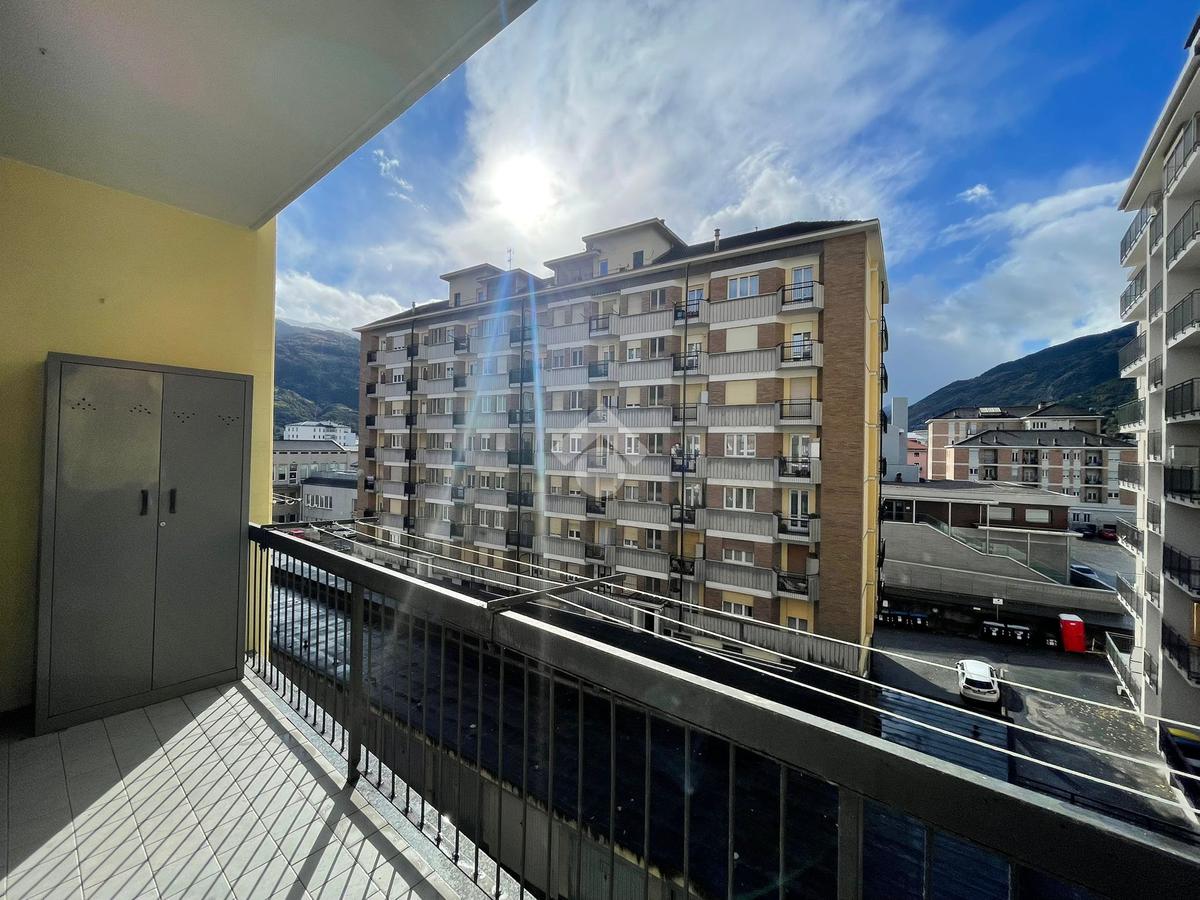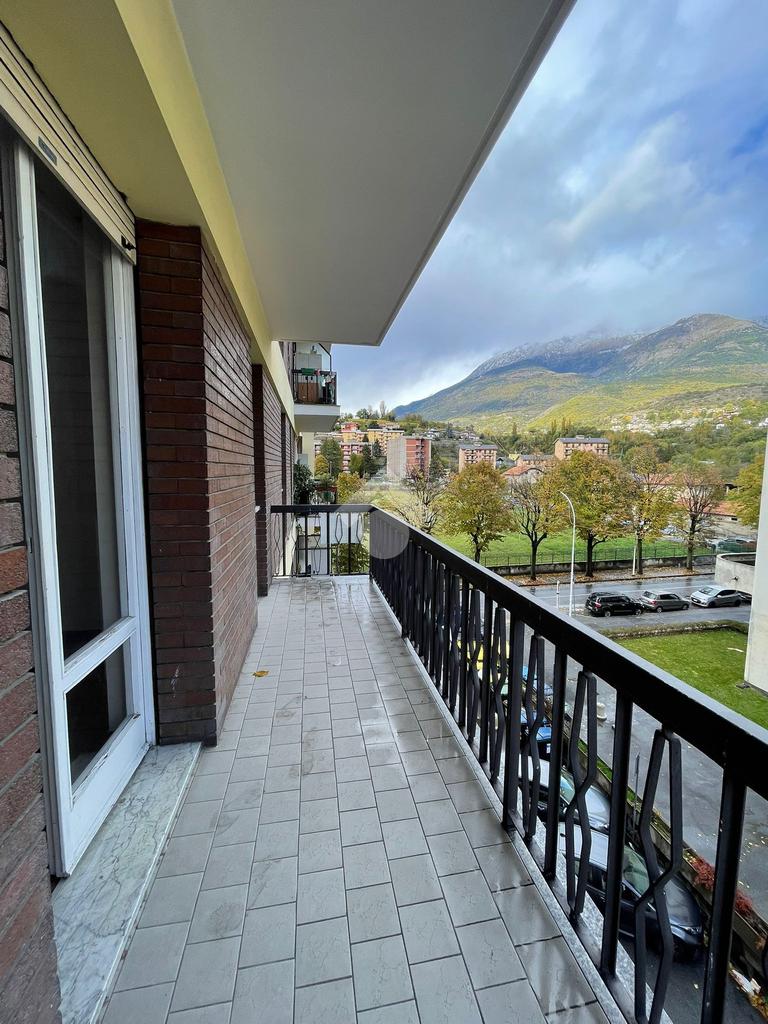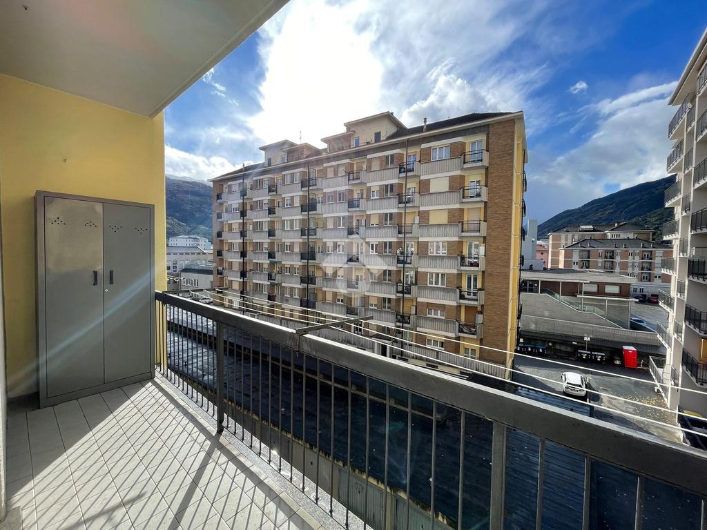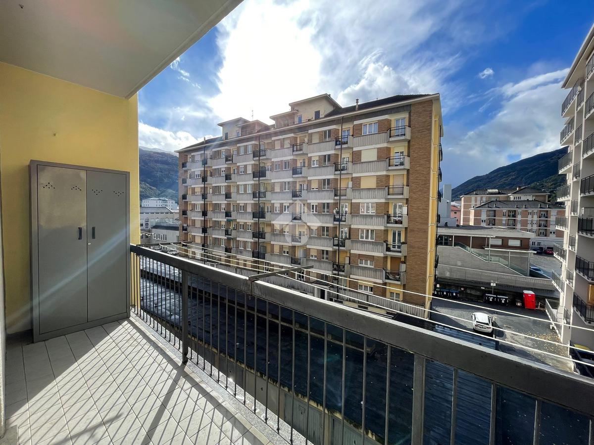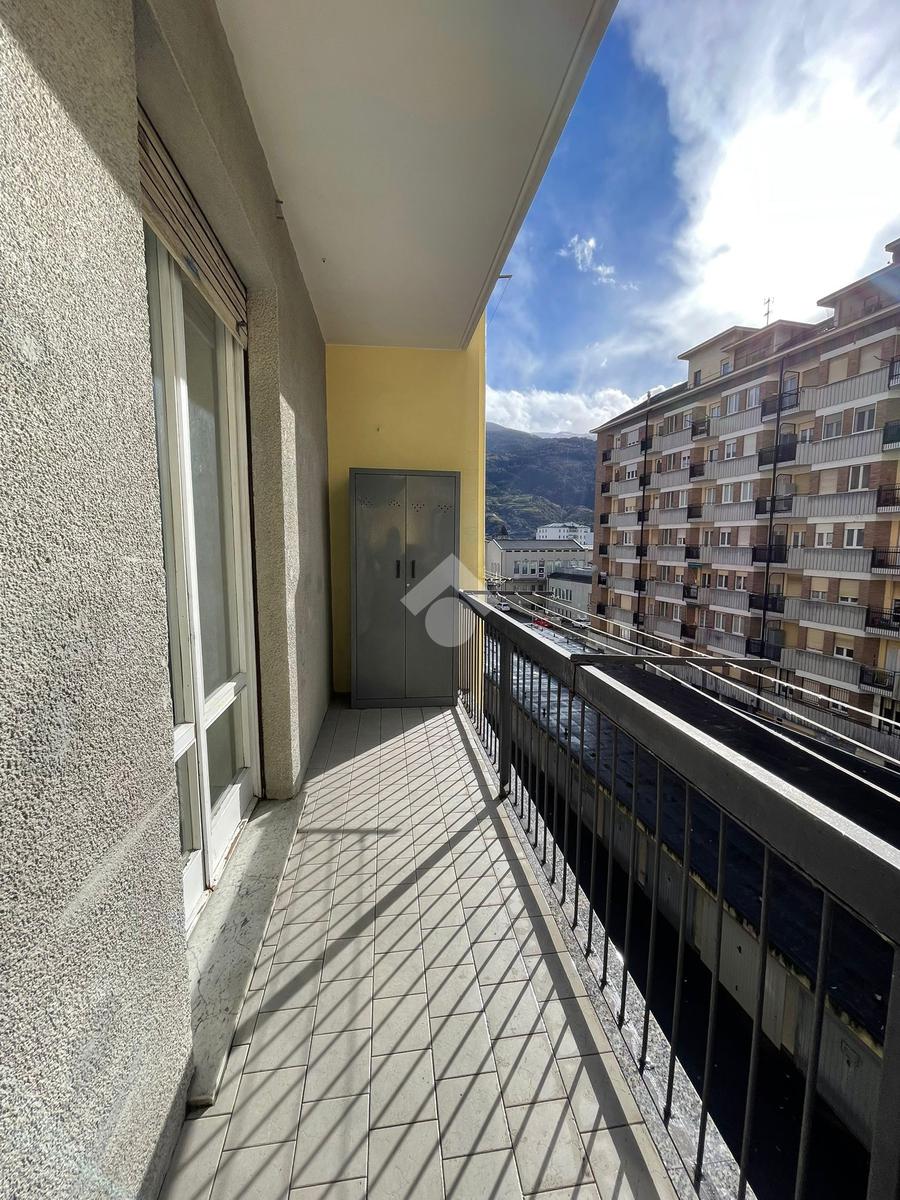 In Aosta, Viale Federico Chabod, al ridosso del centro e nelle immediate vicinanze dell'ospedale, l'alloggio è al terzo piano servito da ascensore. Il soggiorno è separato dalla cucina abitabile con l'uscita sul balcone a ovest. La zona notte ospita due camere matrimoniali con servizio. Completa l'immobile due balconi, la cantina e posto auto condominiale.