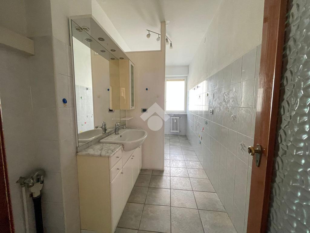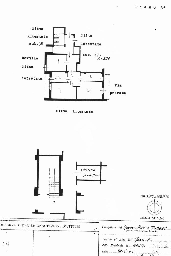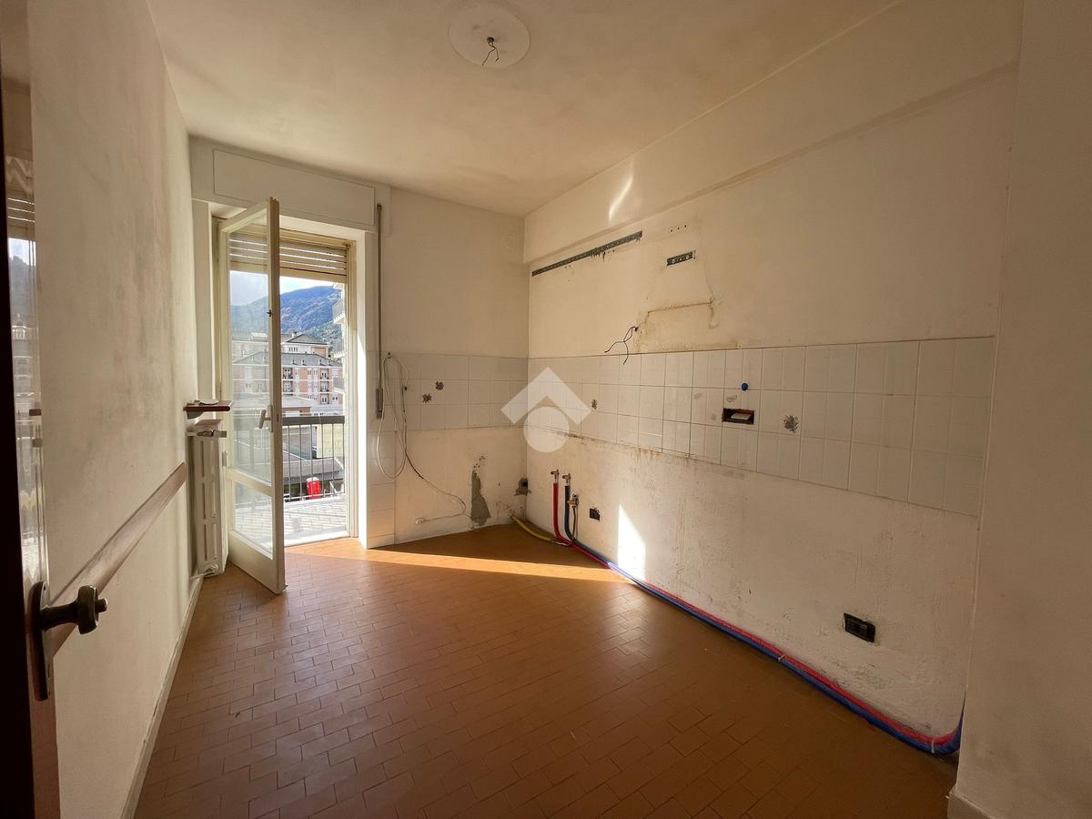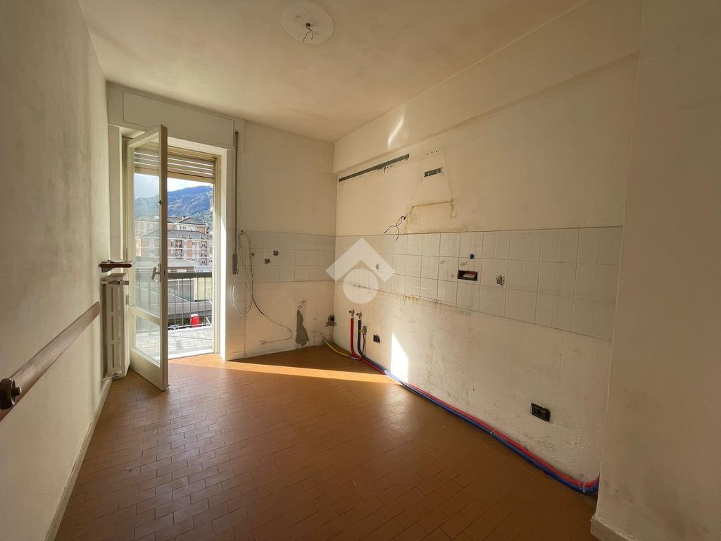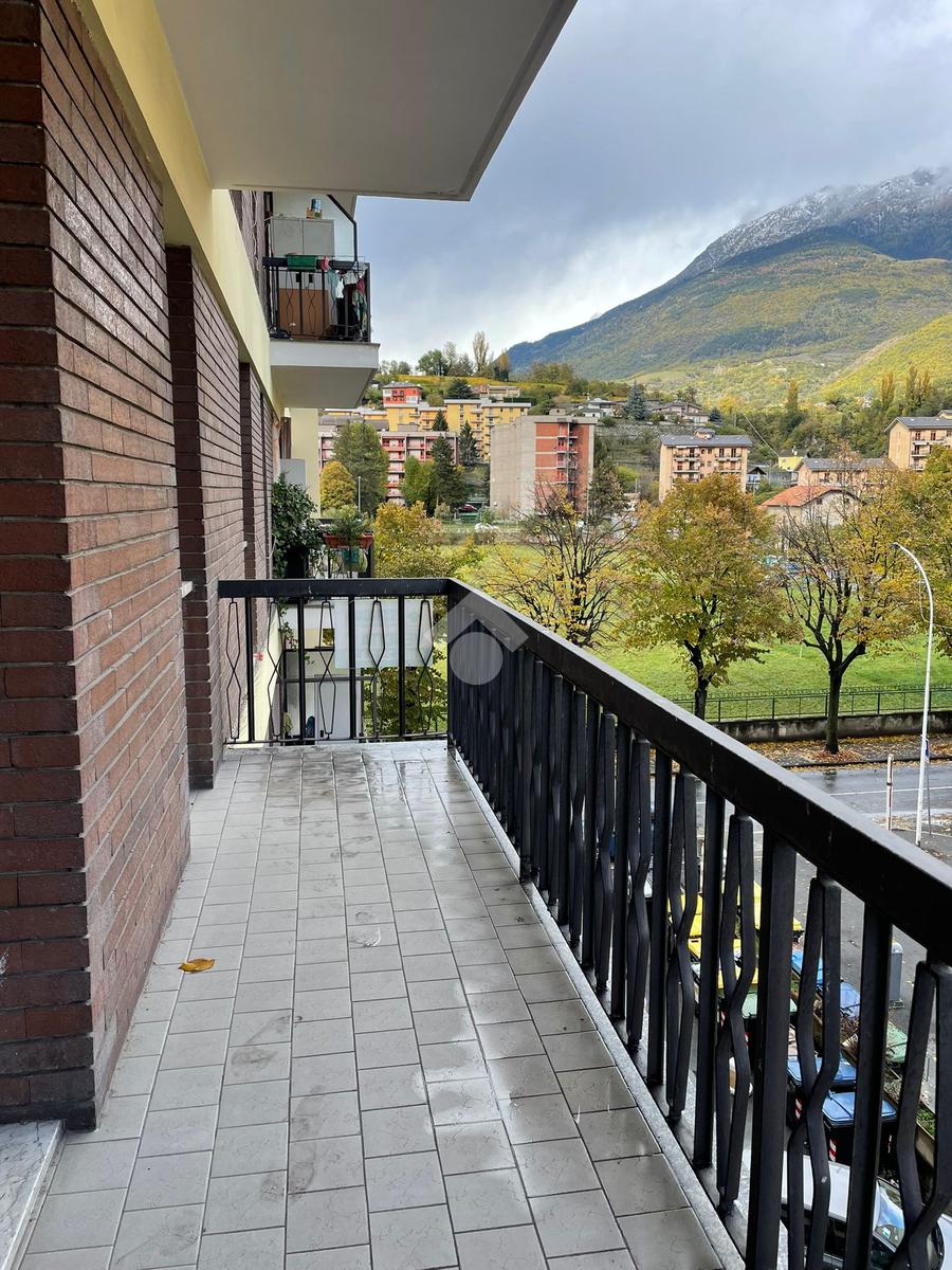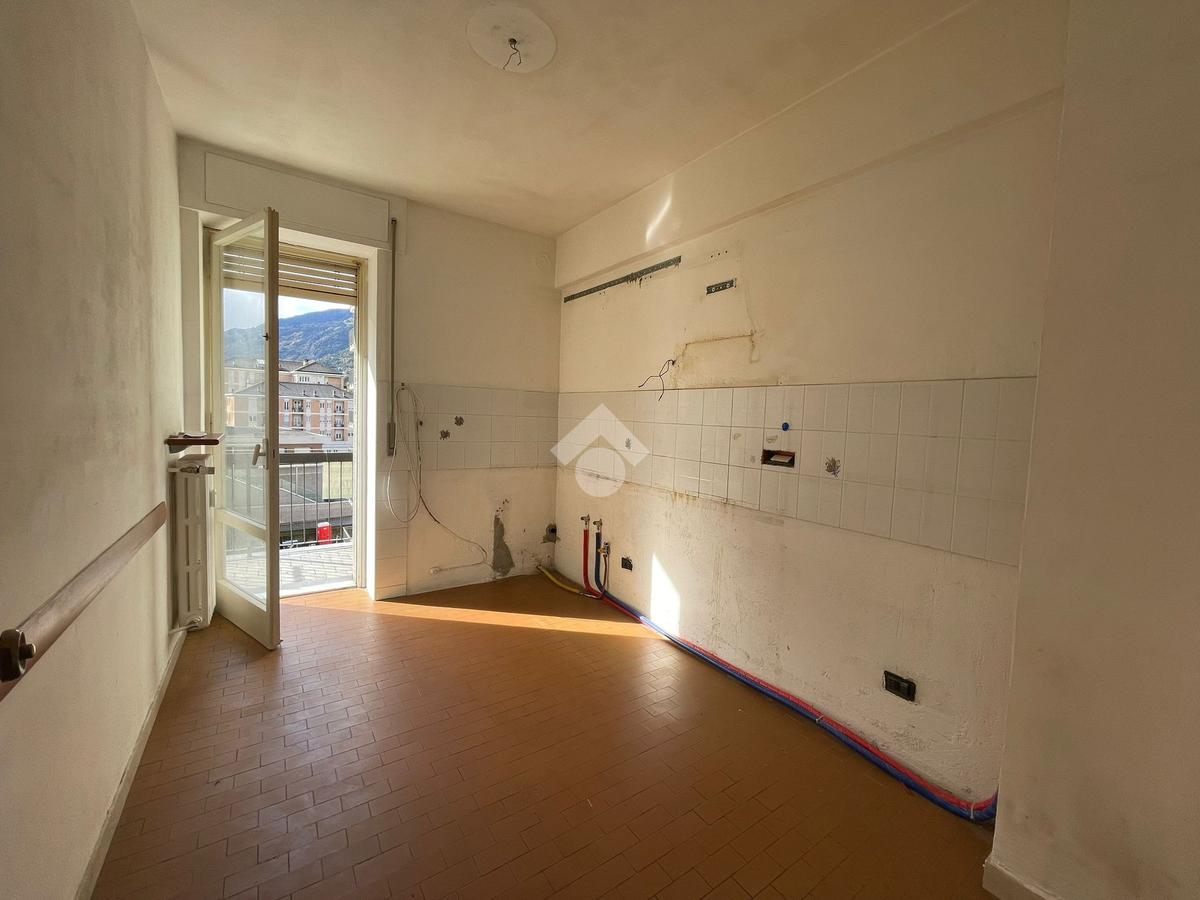 In Aosta, Viale Federico Chabod, al ridosso del centro e nelle immediate vicinanze dell'ospedale, l'alloggio è al terzo piano servito da ascensore. Il soggiorno è separato dalla cucina abitabile con l'uscita sul balcone a ovest. La zona notte ospita due camere matrimoniali con servizio. Completa l'immobile due balconi, la cantina e posto auto condominiale.
