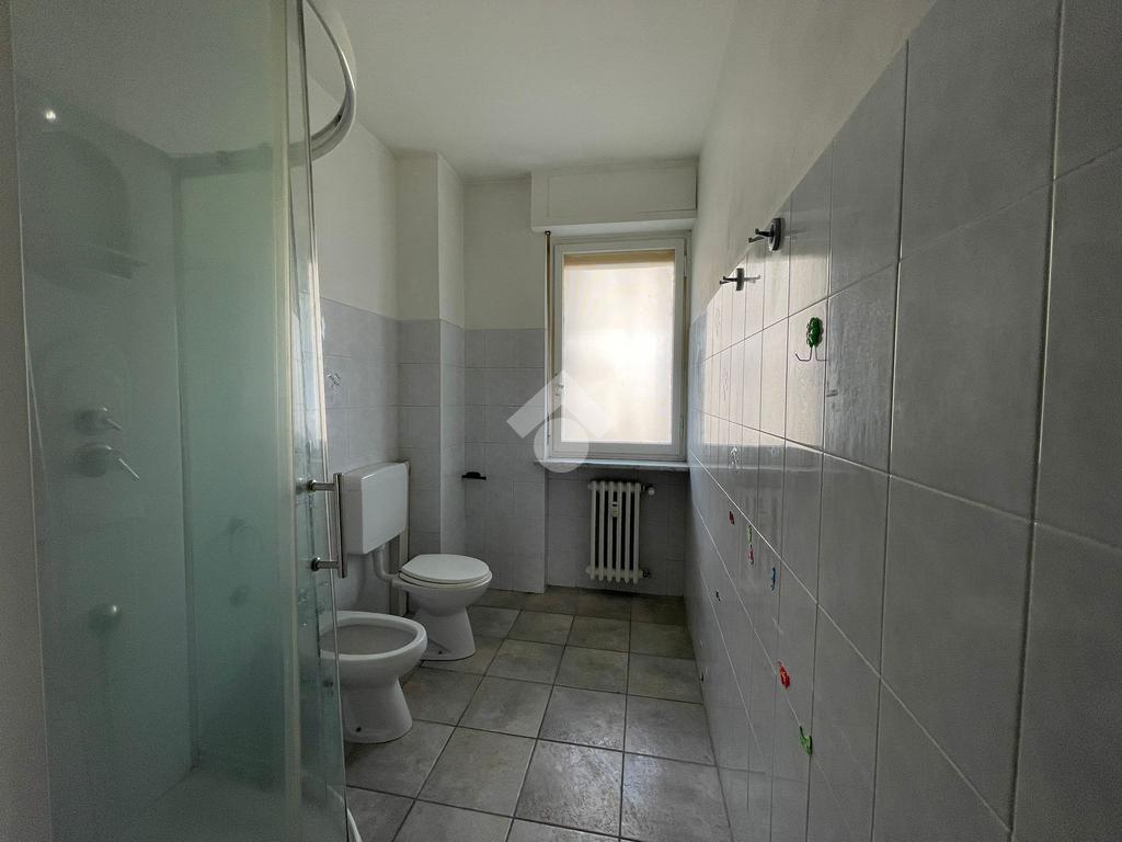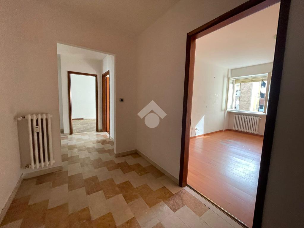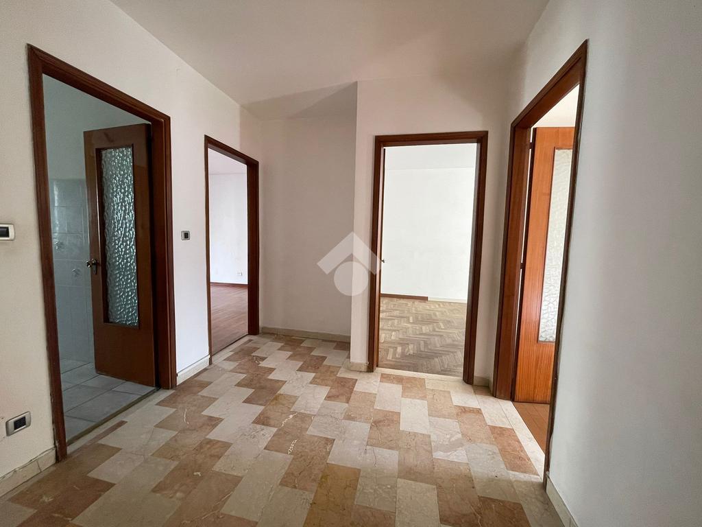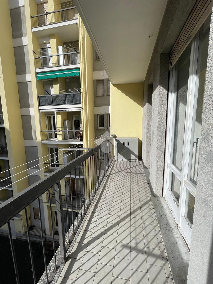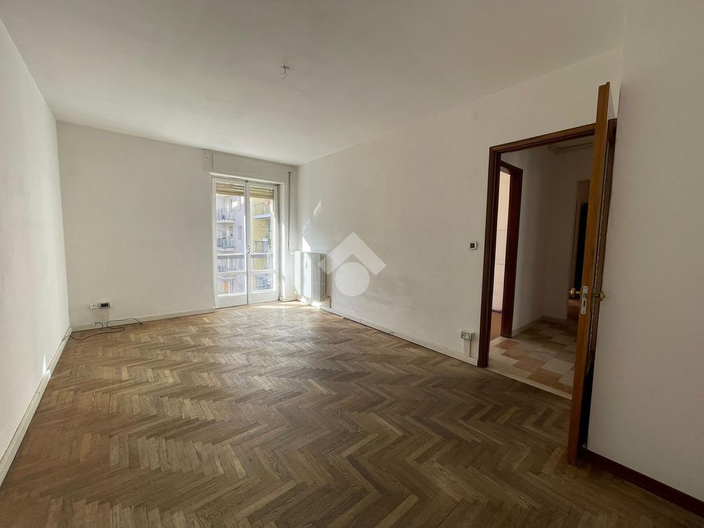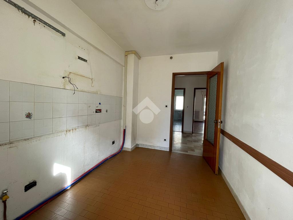 In Aosta, Viale Federico Chabod, al ridosso del centro e nelle immediate vicinanze dell'ospedale, l'alloggio è al terzo piano servito da ascensore. Il soggiorno è separato dalla cucina abitabile con l'uscita sul balcone a ovest. La zona notte ospita due camere matrimoniali con servizio. Completa l'immobile due balconi, la cantina e posto auto condominiale.