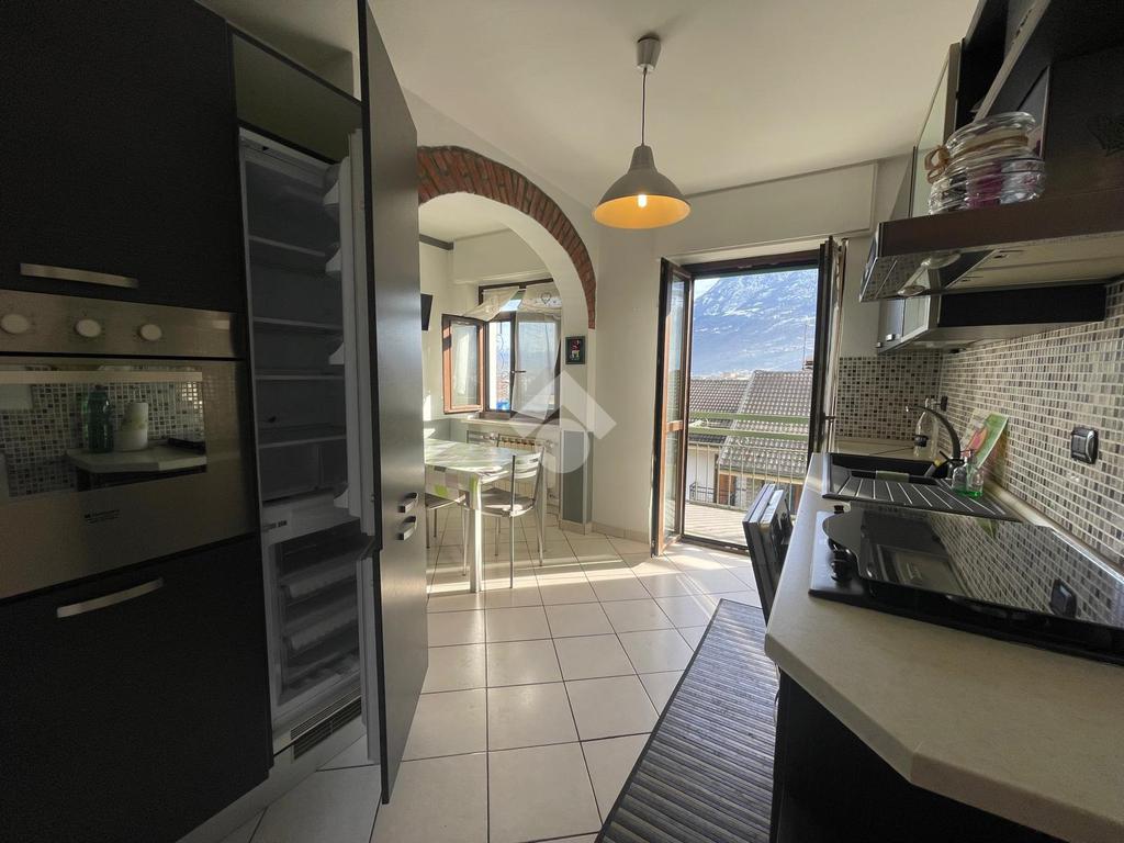 In Aosta, Via Gilles de Chevreres, in contesto di 4 unità l'alloggio è al primo e ultimo piano. Il soggiorno è separato dalla cucina abitabile esposti a sud. La zona notte ospita due camere e bagno. Completa l'unità un ampio box auto, un ripostiglio e un balcone a sud. ll riscaldamento e l'acqua calda sono autonomi con caldaia a metano. Le spse condominiali sono contenute.