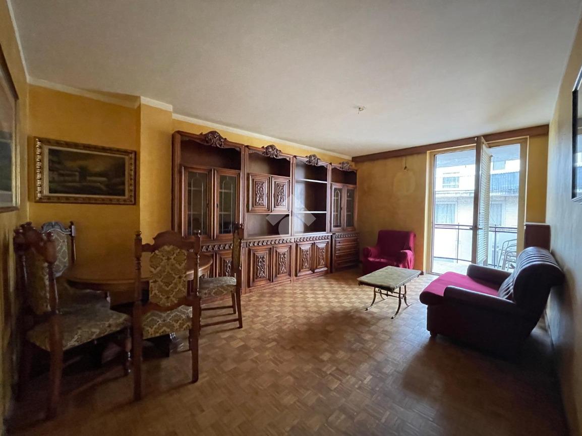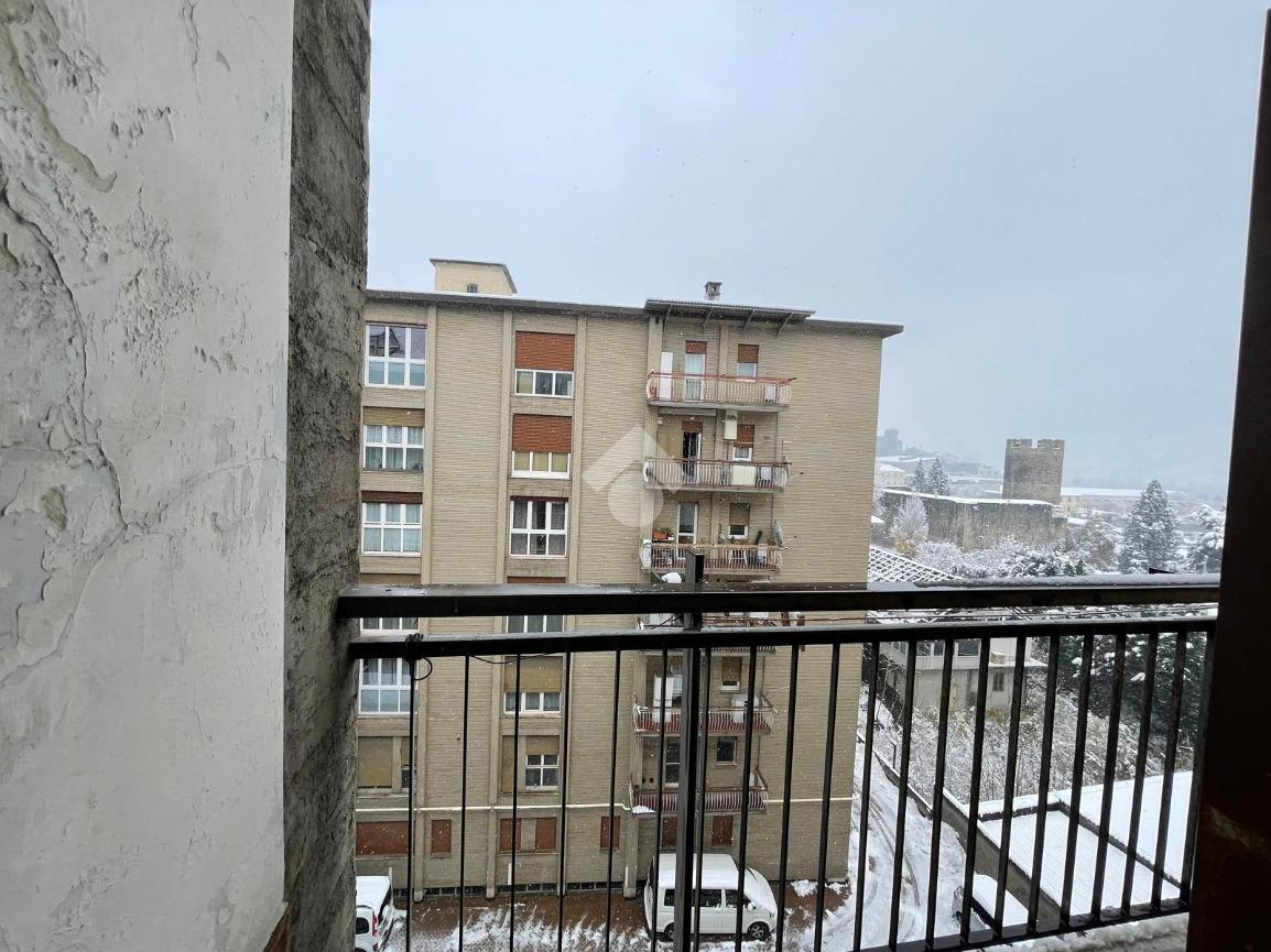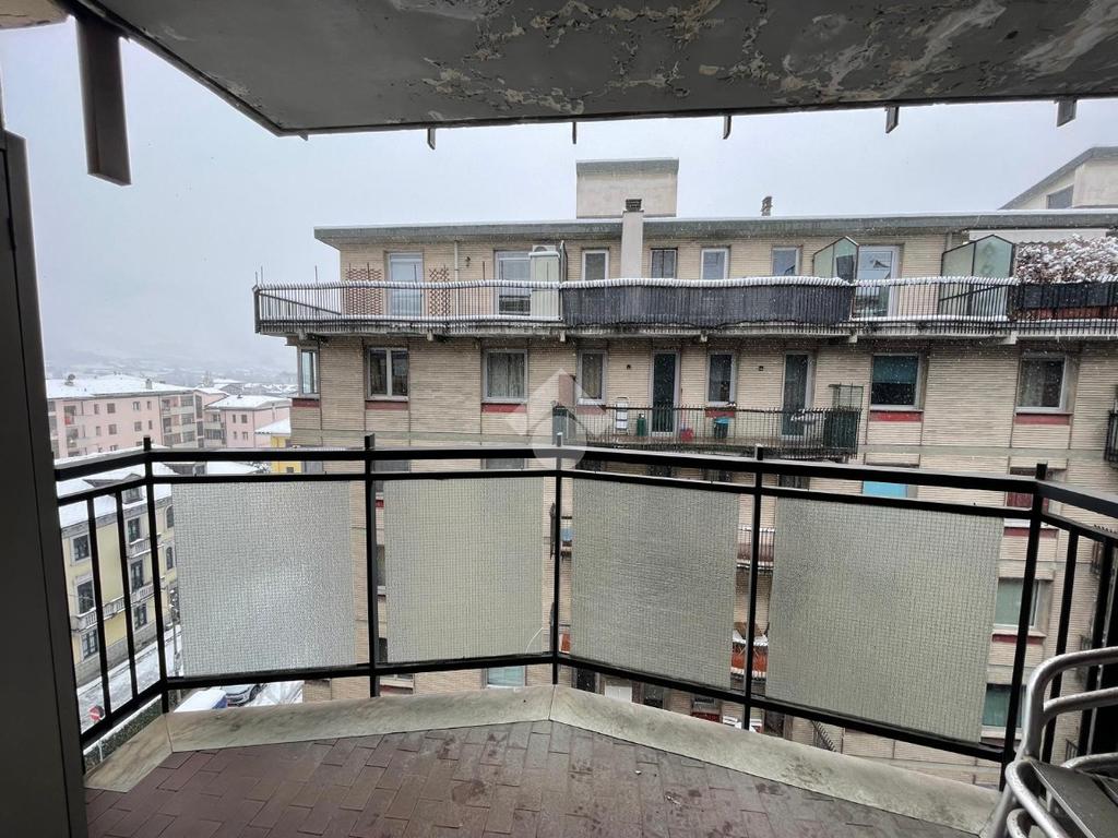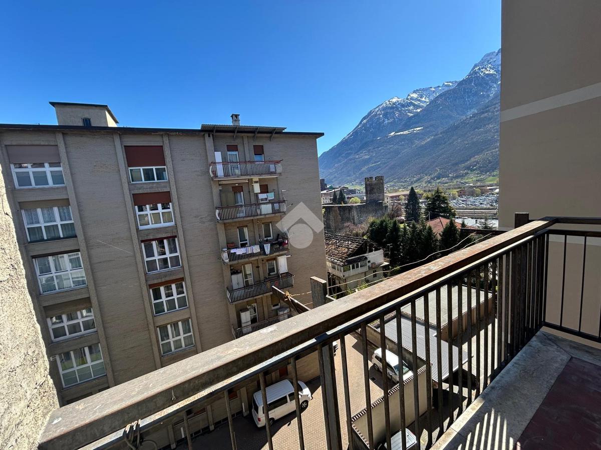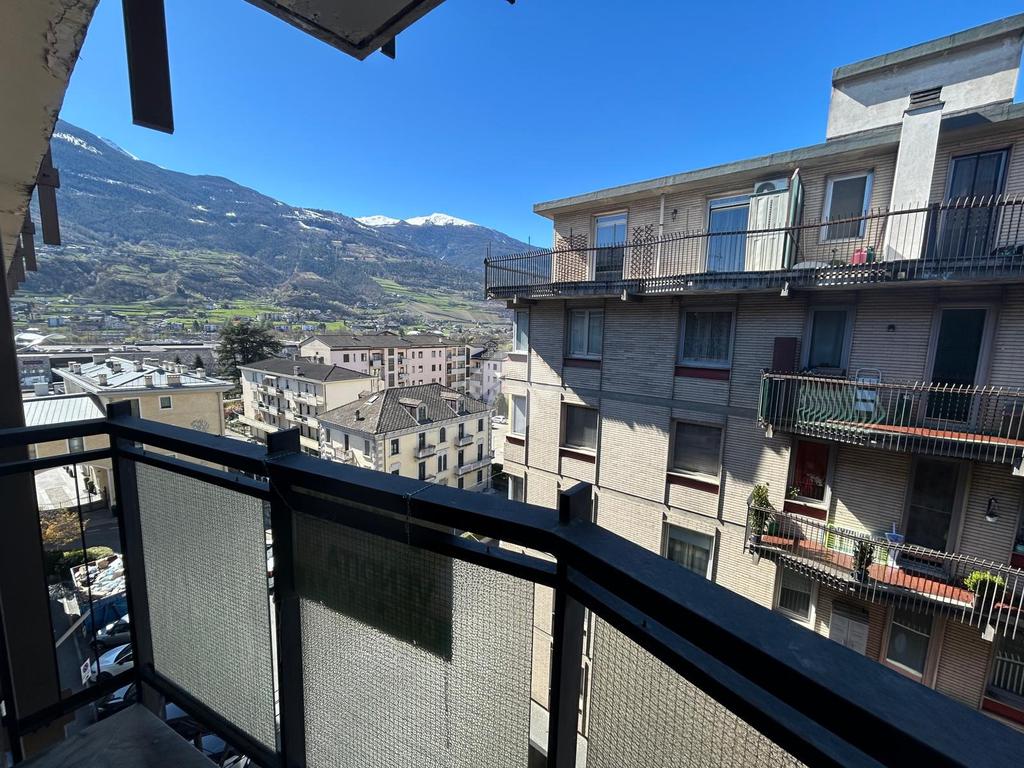 In Aosta, Via Trottechien, al ridosso del centro storico e comodo a tutti i servizi. L'alloggio è al quinto piano servito da ascensore con un'ottima vista panoramica a est e ovest. Il soggiorno è ampio e separato dal tinello con l'uscita sul balcone a ovest. La zona notte ospita una cmaera matrimoniale e bagno con finestra. Completa la cantina. Il riscladamento è semiautonomo a metano.