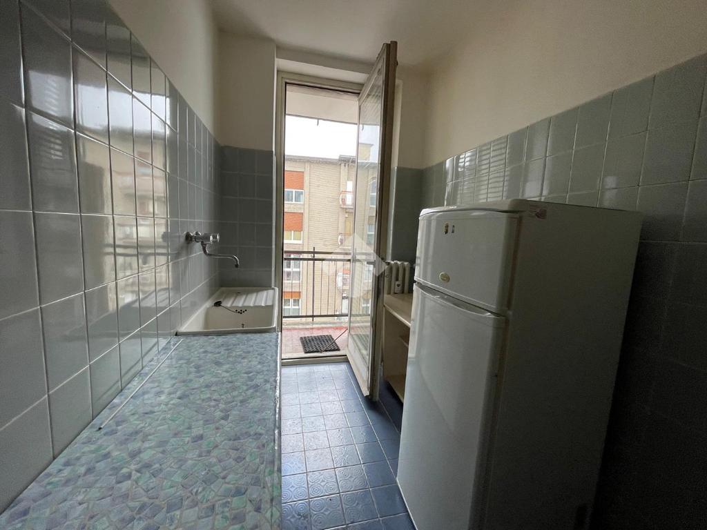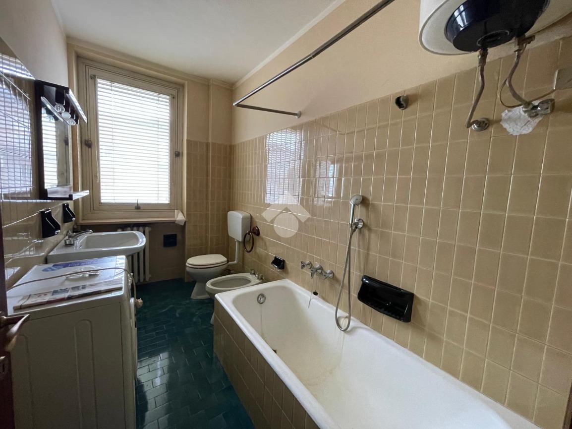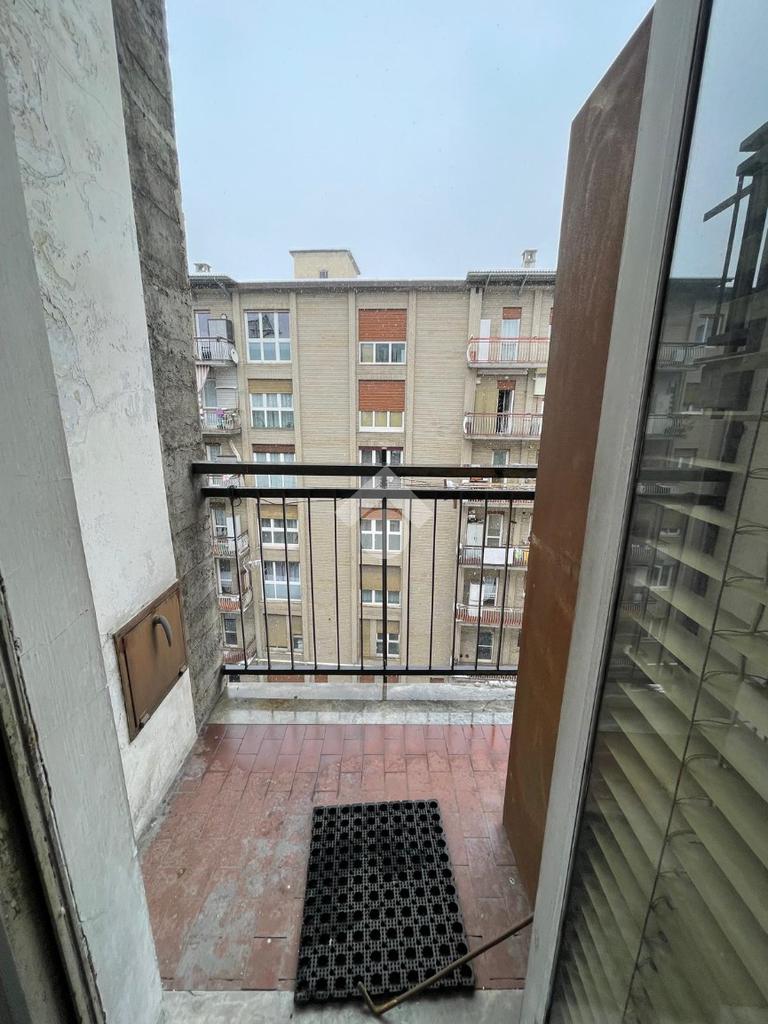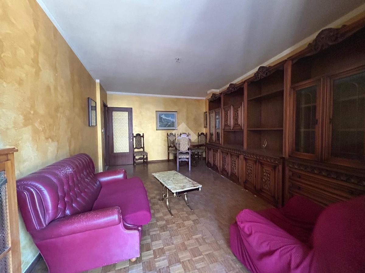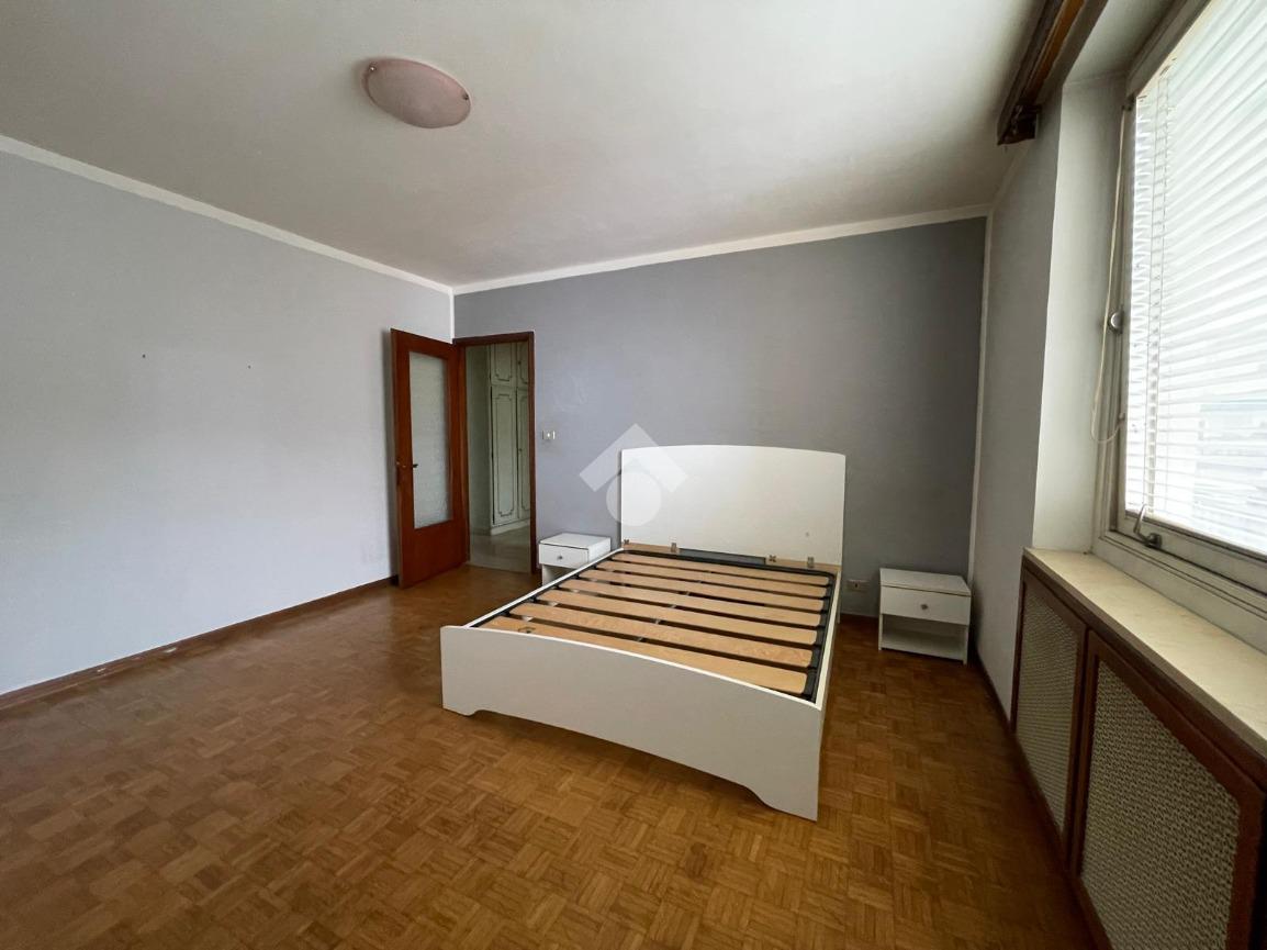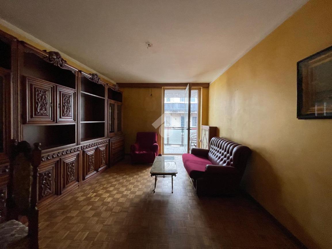 In Aosta, Via Trottechien, al ridosso del centro storico e comodo a tutti i servizi. L'alloggio è al quinto piano servito da ascensore con un'ottima vista panoramica a est e ovest. Il soggiorno è ampio e separato dal tinello con l'uscita sul balcone a ovest. La zona notte ospita una cmaera matrimoniale e bagno con finestra. Completa la cantina. Il riscladamento è semiautonomo a metano.