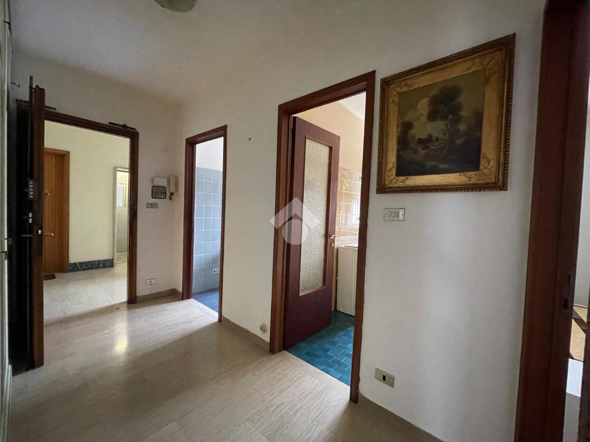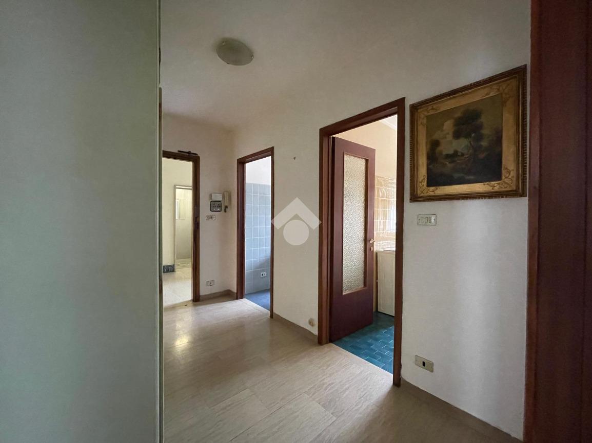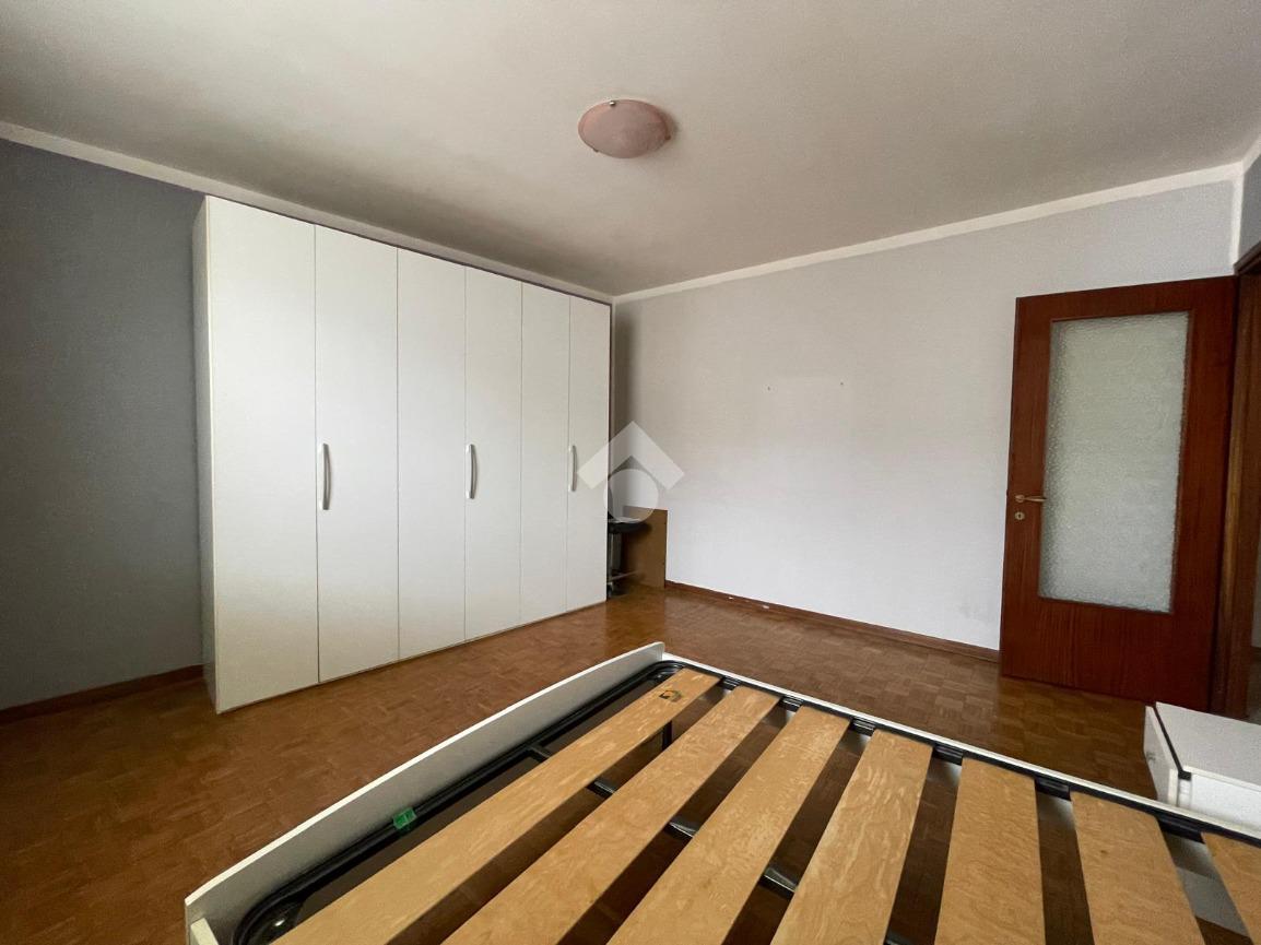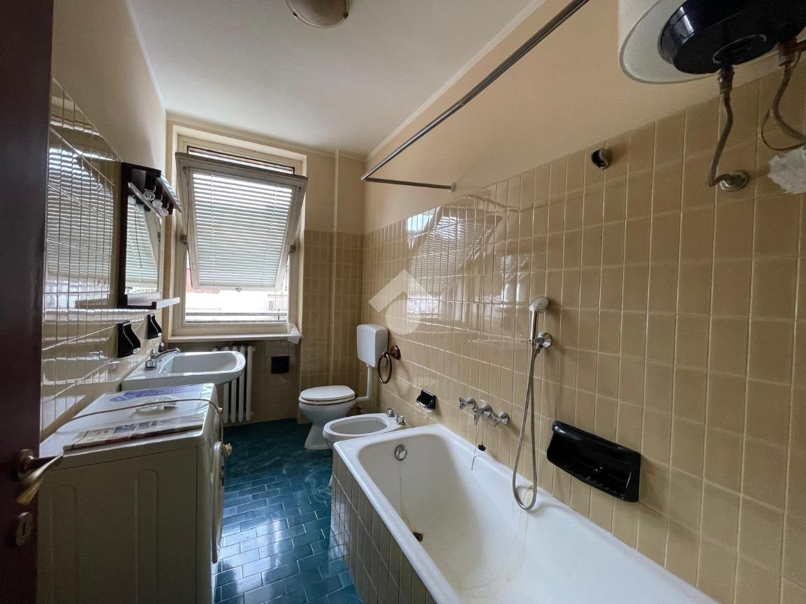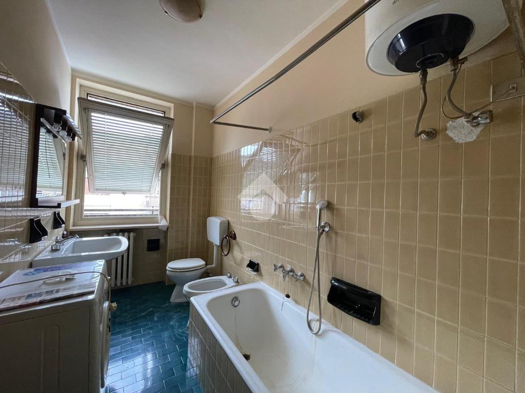 In Aosta, Via Trottechien, al ridosso del centro storico e comodo a tutti i servizi. L'alloggio è al quinto piano servito da ascensore con un'ottima vista panoramica a est e ovest. Il soggiorno è ampio e separato dal tinello con l'uscita sul balcone a ovest. La zona notte ospita una cmaera matrimoniale e bagno con finestra. Completa la cantina. Il riscladamento è semiautonomo a metano.