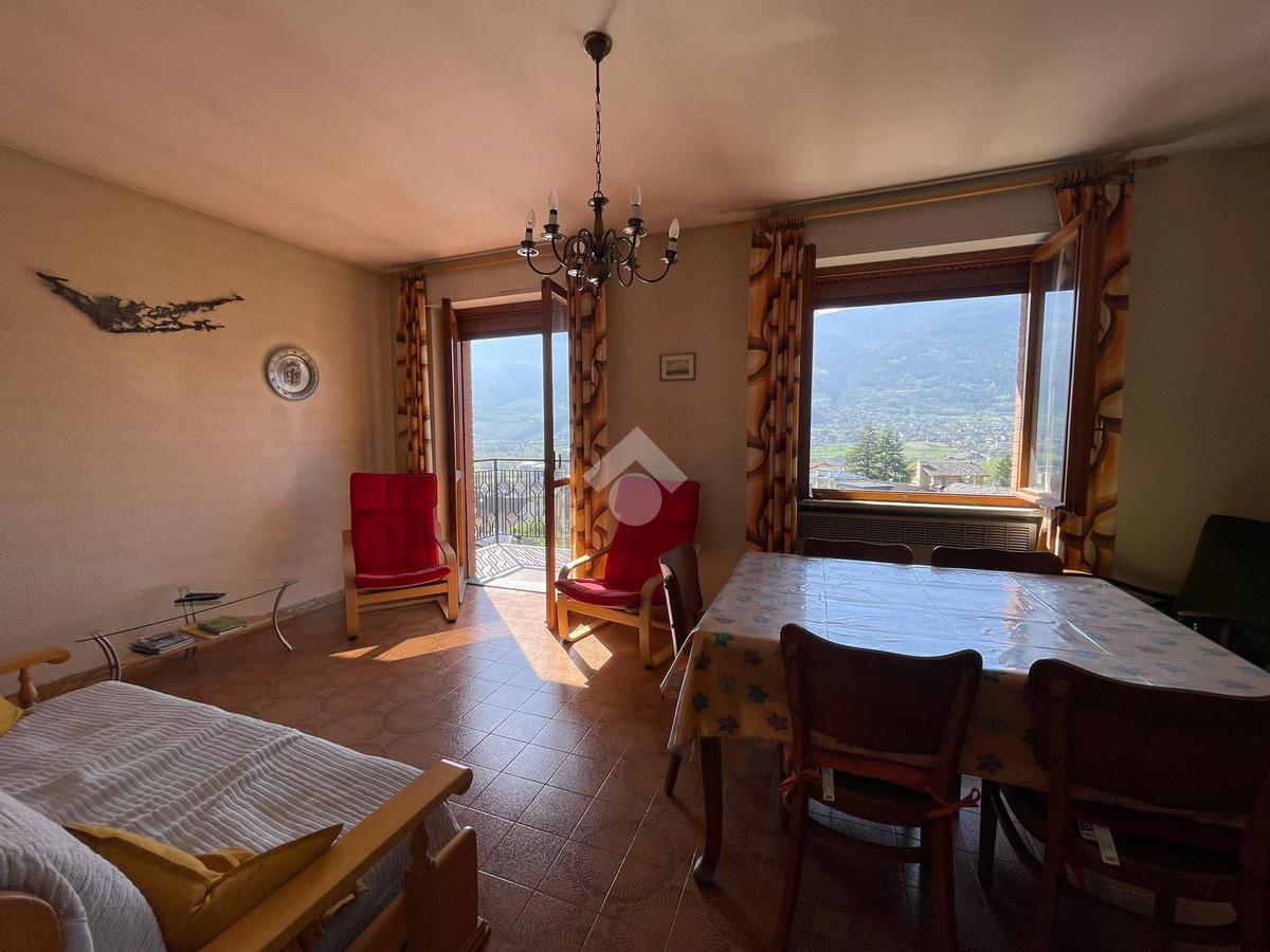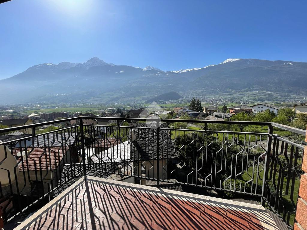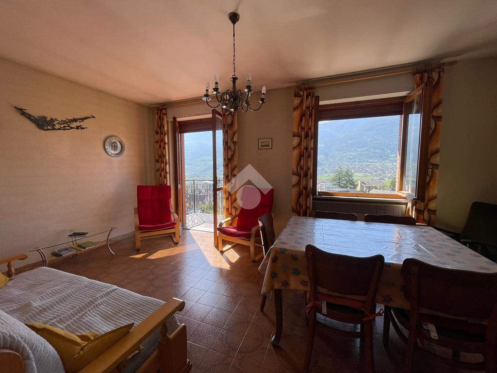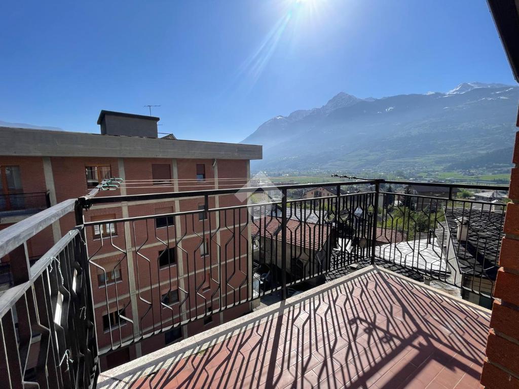 In Aosta, Regione Brenlo, l'alloggio è al secondo e ultimo piano con un'ottima esposizione a sud-est e nord. Il soggiorno è luminoso esposto a sud con l'uscita sul balcone. La cucina è separata con l'uscita sul balcone. La zona notte ospita due camere e bagno. Completa il posto auto assegnato e la cantina. Il riscaldamento è semiautonomo a metano con termovalvole e contakilocalorie. Il tetto è stato rifatto nel 2025. L'acqua è centralizzata. Possibilità di acquistare il box auto a parte.