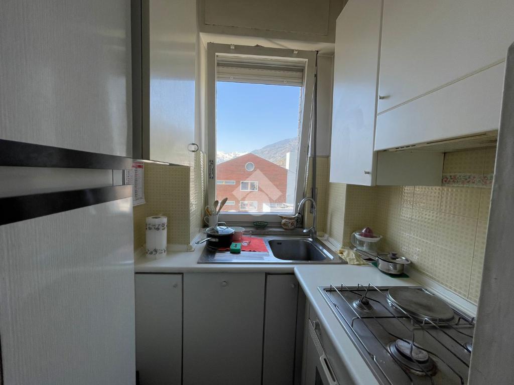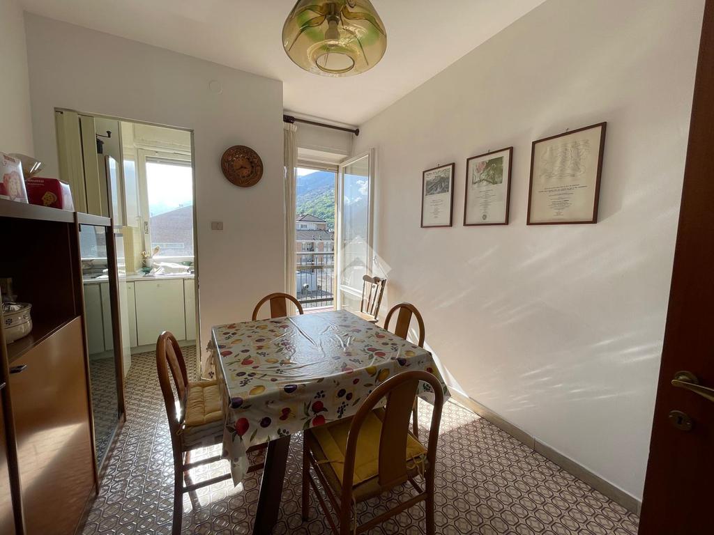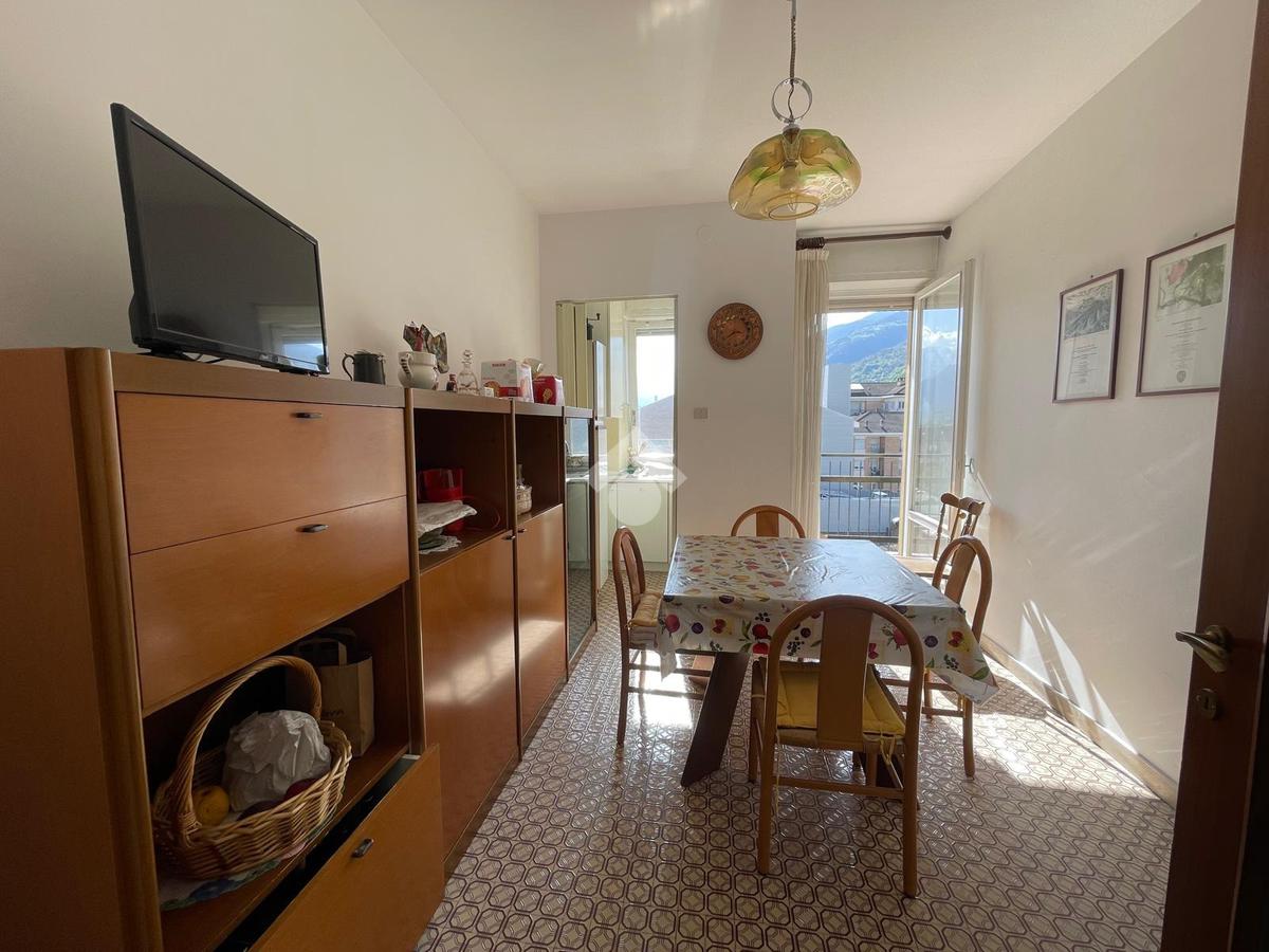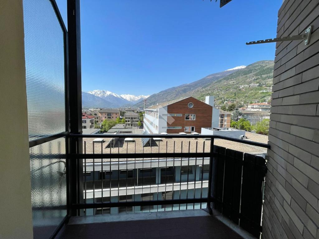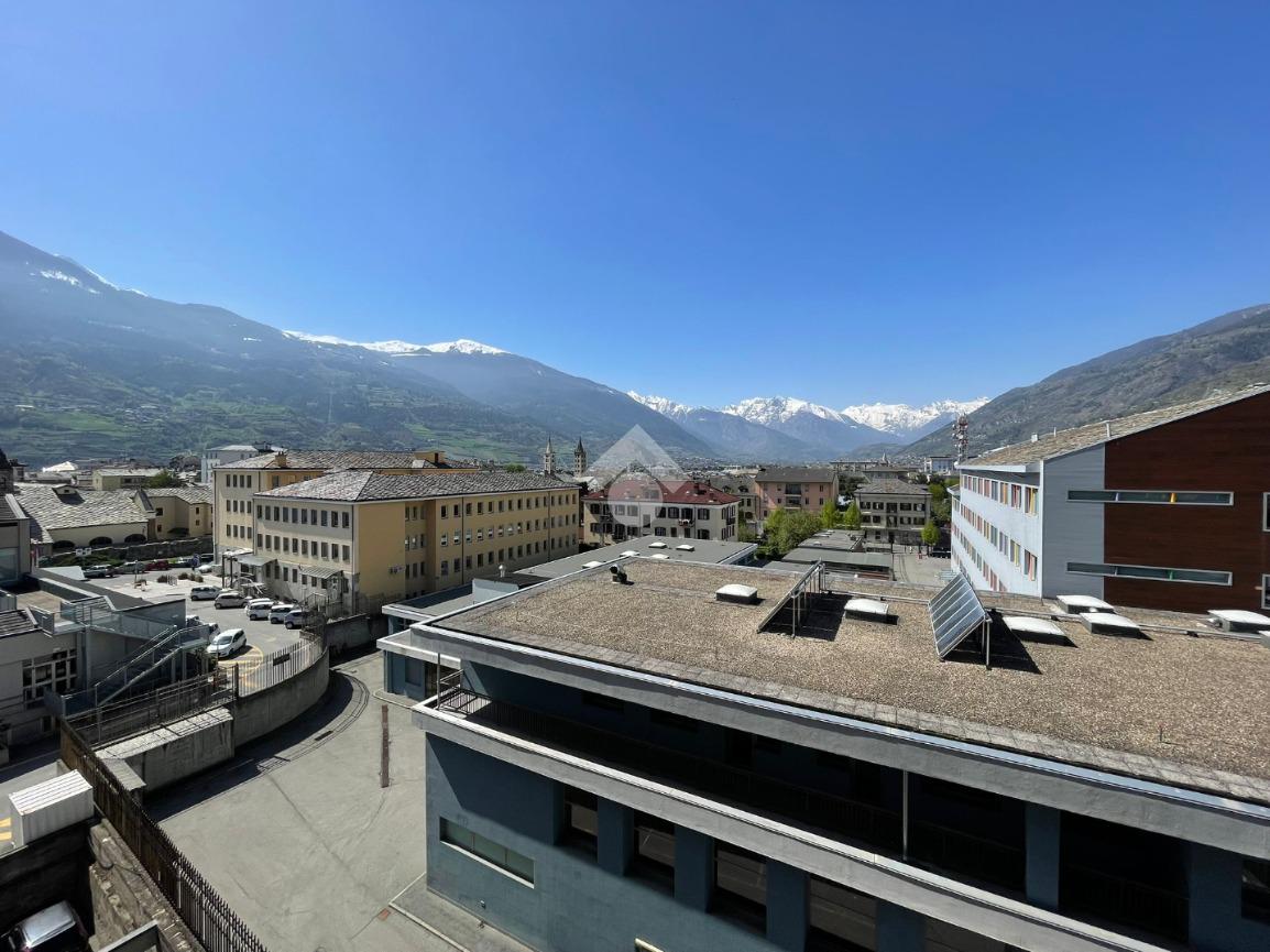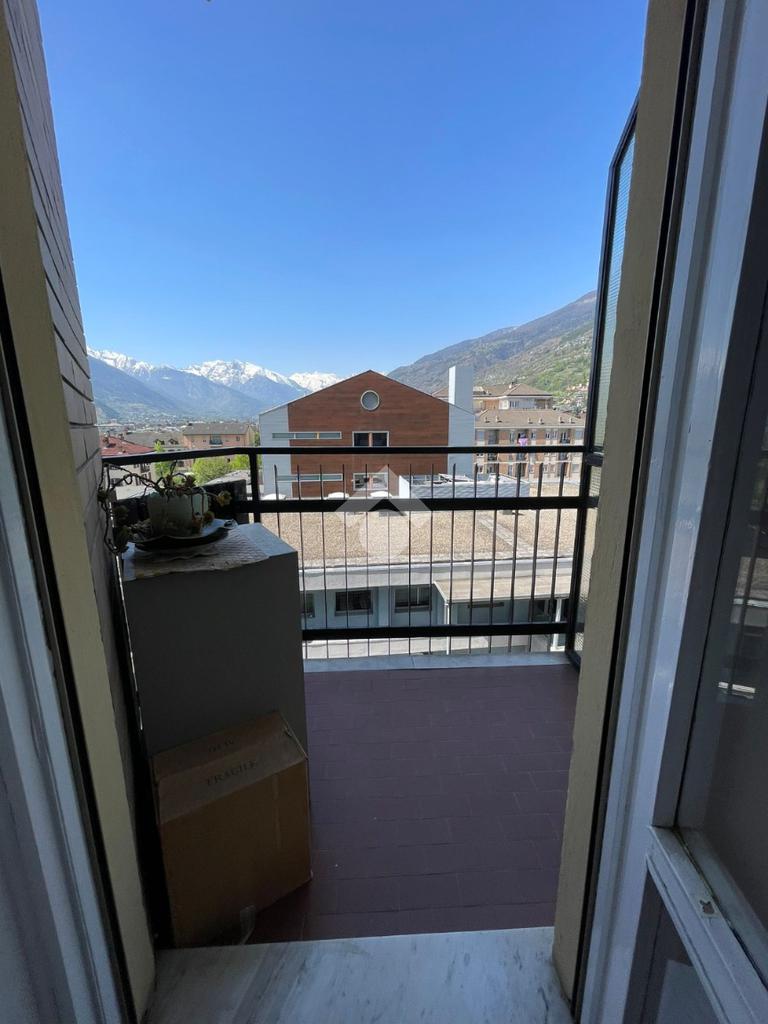 In Aosta, Viale Federico Chabod, al ridosso del centro e dell'ospedale, comodo a tutti i servizi. L'alloggio è al quarto piano completamente esposto a ovest con tre balconi. Il soggiorno è ampio e luminoso con balcone. La cucina con tinello è separata dal soggiorno con la possibilità di unire i due ambienti. La zona notte ospita due camere, bagno con finestrata e ripostiglio. Completa l'immobile il box auto. Il condominio è allacciato al teleriscaldamento.