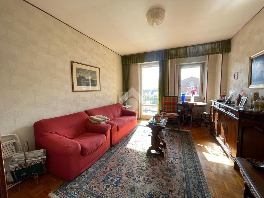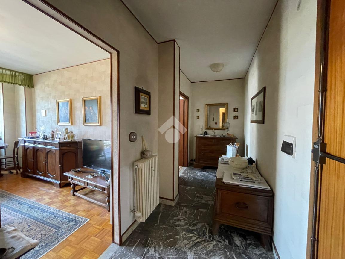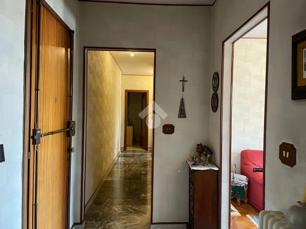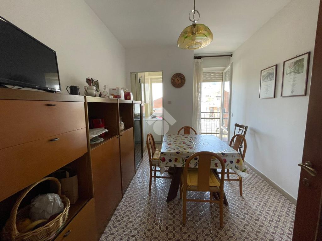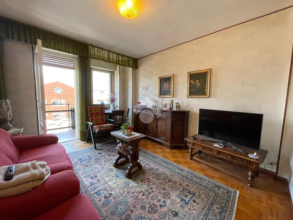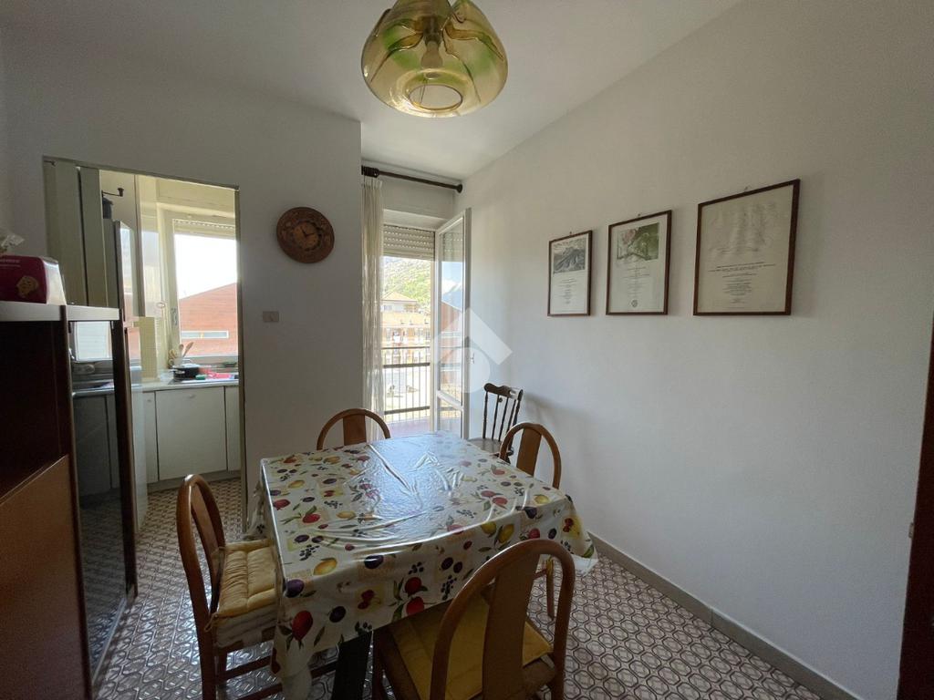 In Aosta, Viale Federico Chabod, al ridosso del centro e dell'ospedale, comodo a tutti i servizi. L'alloggio è al quarto piano completamente esposto a ovest con tre balconi. Il soggiorno è ampio e luminoso con balcone. La cucina con tinello è separata dal soggiorno con la possibilità di unire i due ambienti. La zona notte ospita due camere, bagno con finestrata e ripostiglio. Completa l'immobile il box auto. Il condominio è allacciato al teleriscaldamento.