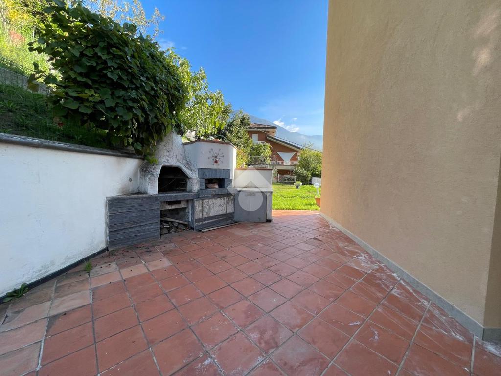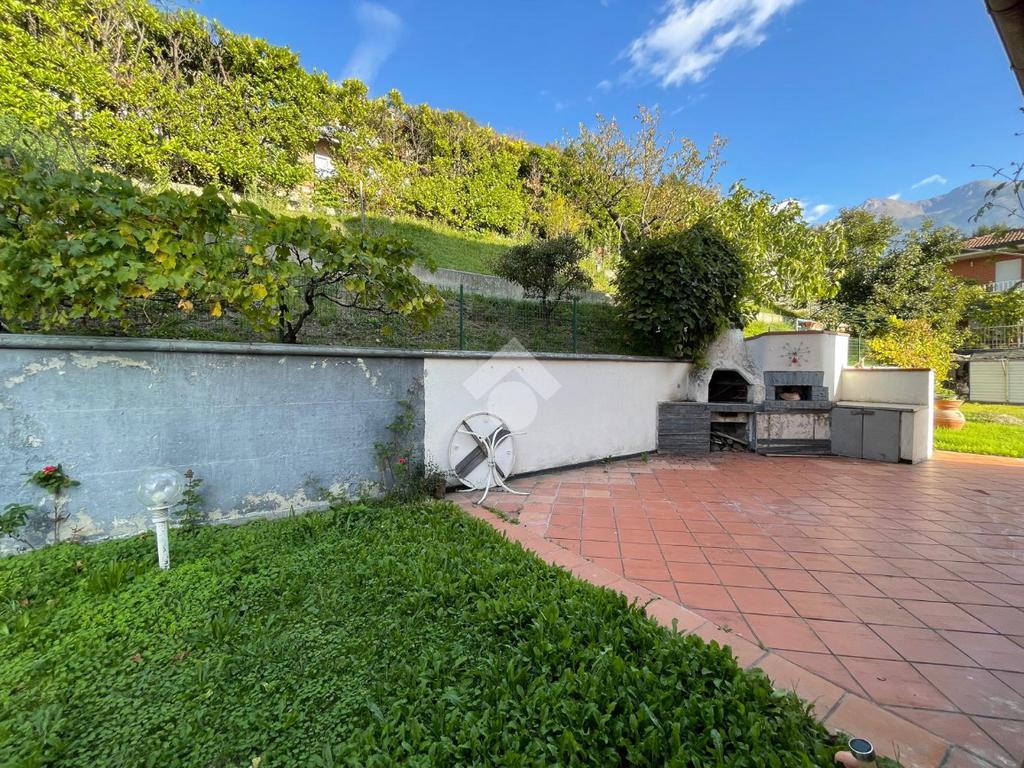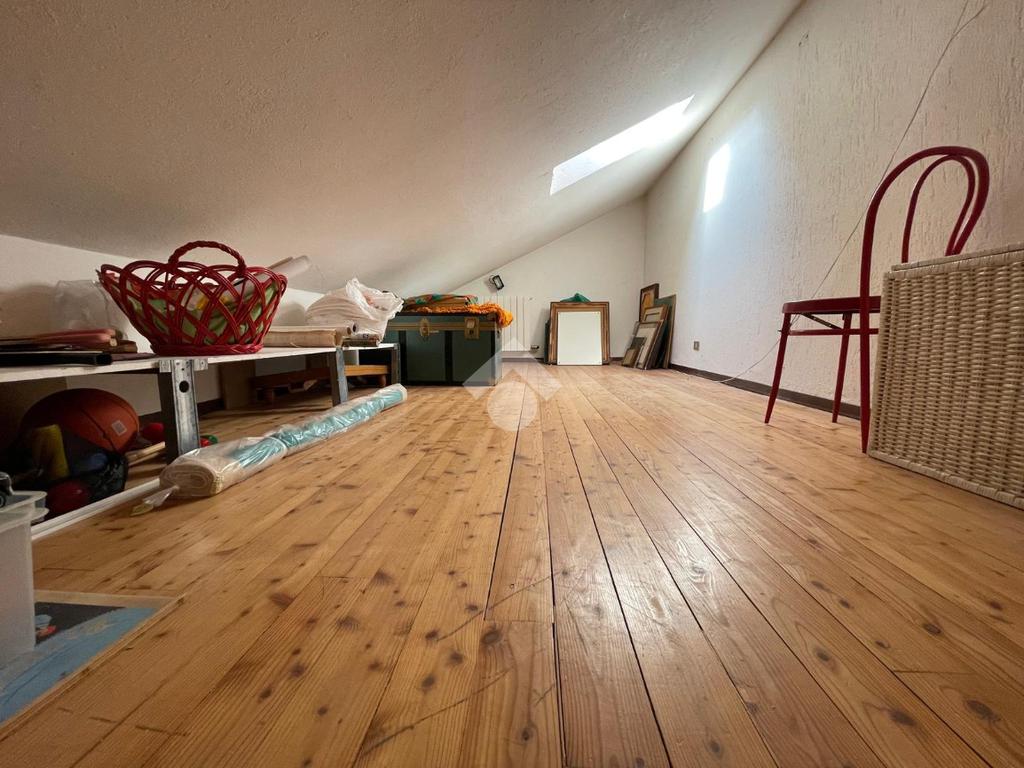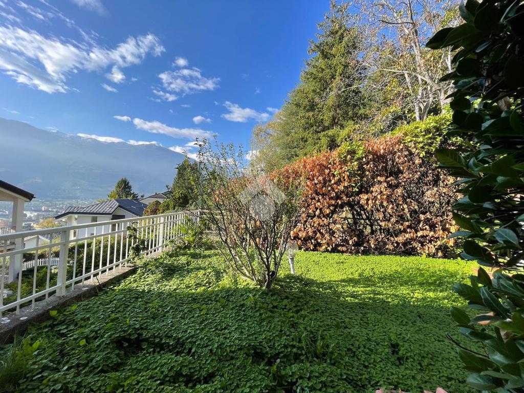 In Aosta, Rue de Bornyon, in zona panoramica e soleggiata. La casa è indipendente libera su quattro lati e libera da cielo a terra. Anche se indipendente si pesenta in un complesso condominiale. Si sviluppa su due livelli. Il piano terra ospita un ampio soggiorno caratterizzato da un camino a legna con l'uscita sul portico e sull'area verde privata. La cucina è abitabile. Tramite una scala interna si accede al piano superiore il quale ospita tre camere da letto con bagno caratterizzato da un'ampia vasca. Dalla zona notte, tramite una scala si accede al sottotetto non abitabile. Il secondo bagno è a livello della zona giorno. Il riscaldamento è semiautonomo a metano con contakilocalorie, termostato interno autonomo. Completa l'unità due box auto e due posti auto davanti ai garage. L'immobile esternamente è stato ristrutturato completamente con cappotto esterno e serramenti.