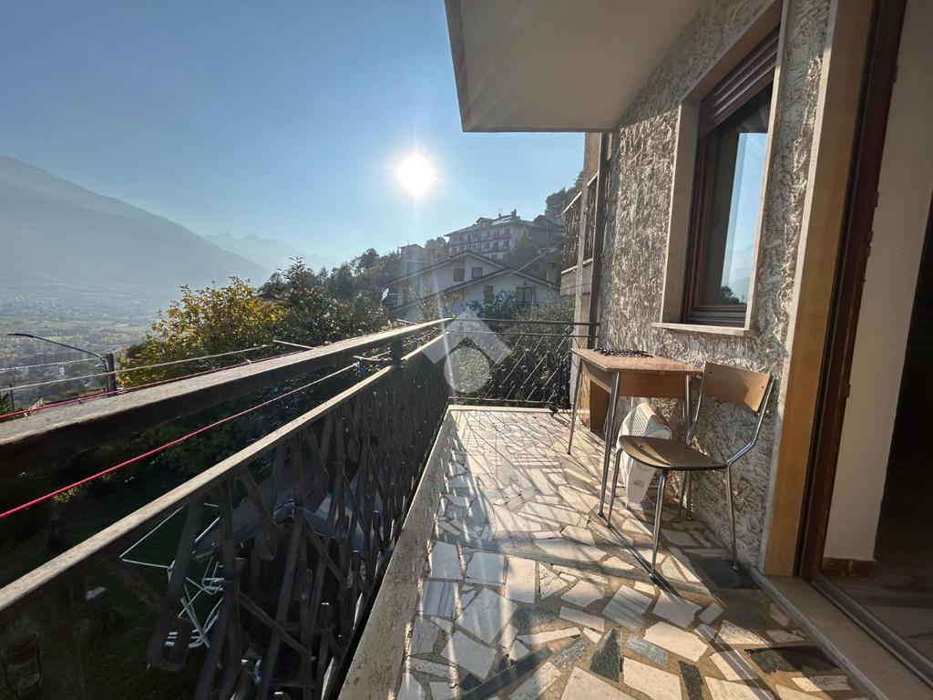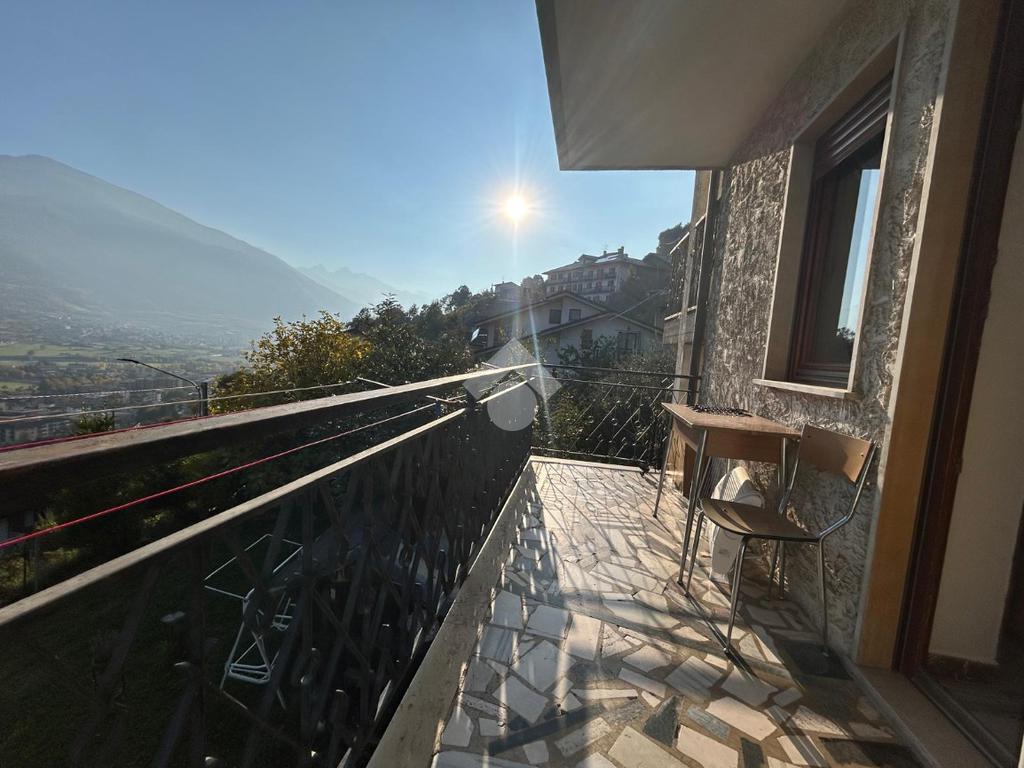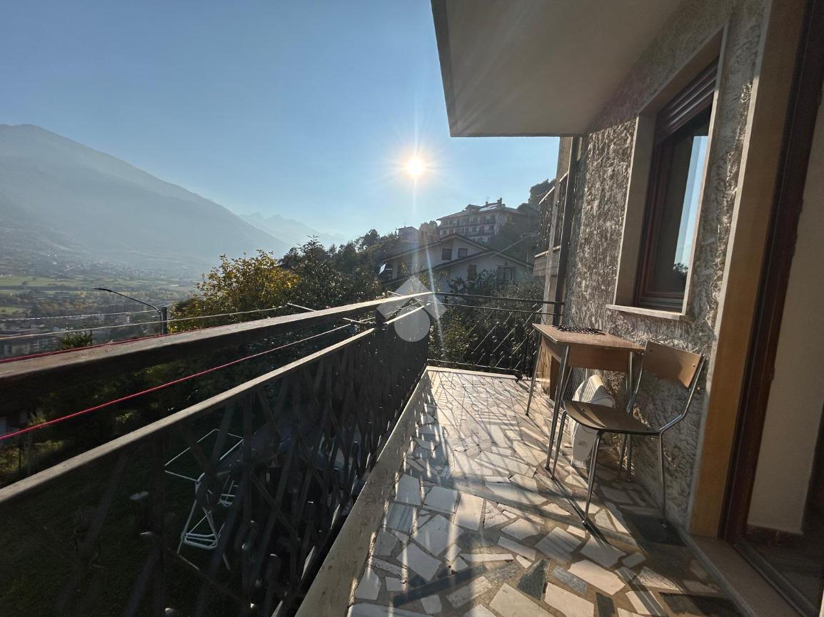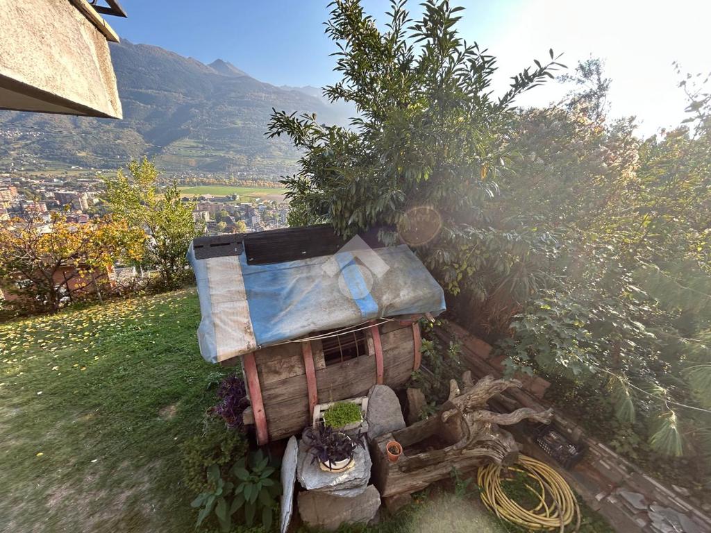 In Aosta, nella prima collina, Regione Bioula, in contesto di due unità abitative. L'alloggio ha l'ingresso indipendente ed è al primo piano con balcone esposto a sud. Il soggiorno è ampio e luminoso con angolo cottura esposto a sud. La zona notte ospita due camere con bagno. Completa l'immobile un'ampia soffitta con accesso dall'esterno, il punto più alto è 3.50 metri e 1.80 mt il punto più basso, con possibilità di collegarla al piano inferiore. Il piano seminterrato ospita la cantina, taverna e area verde di 200 mq. Il riscaldamento è autonomo a gasolio.