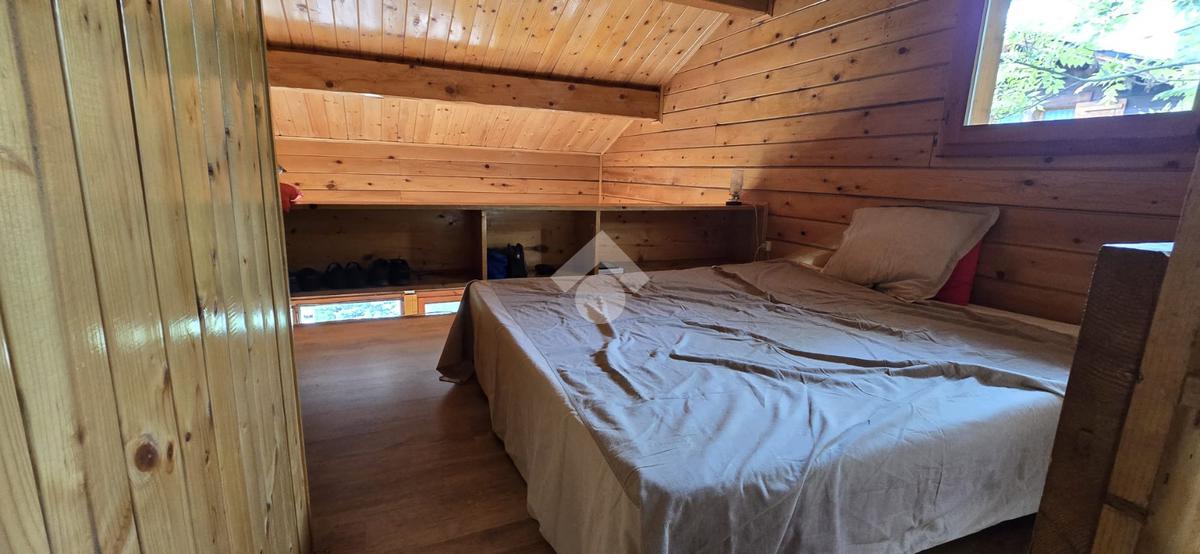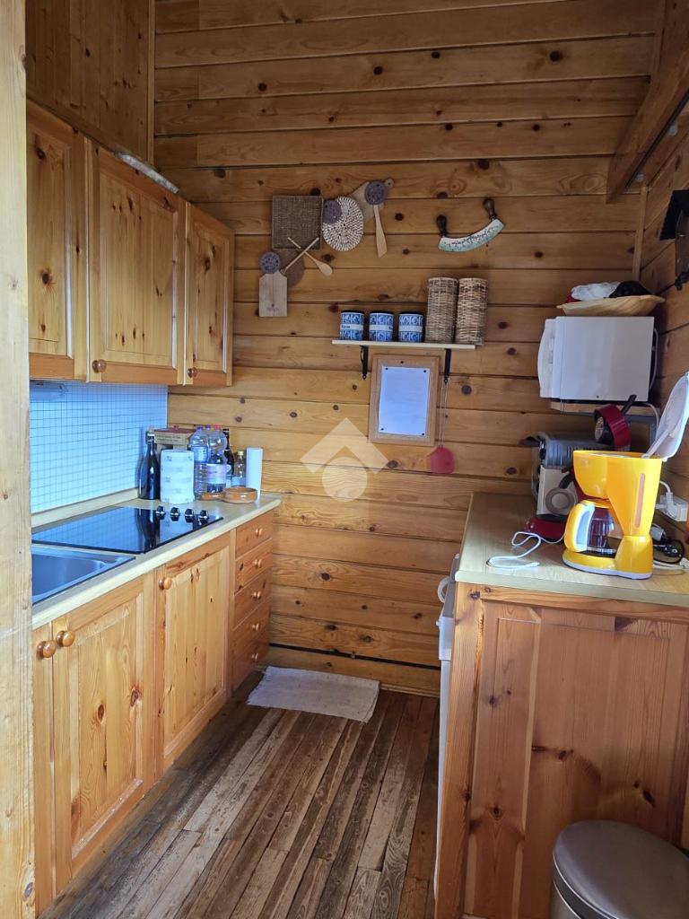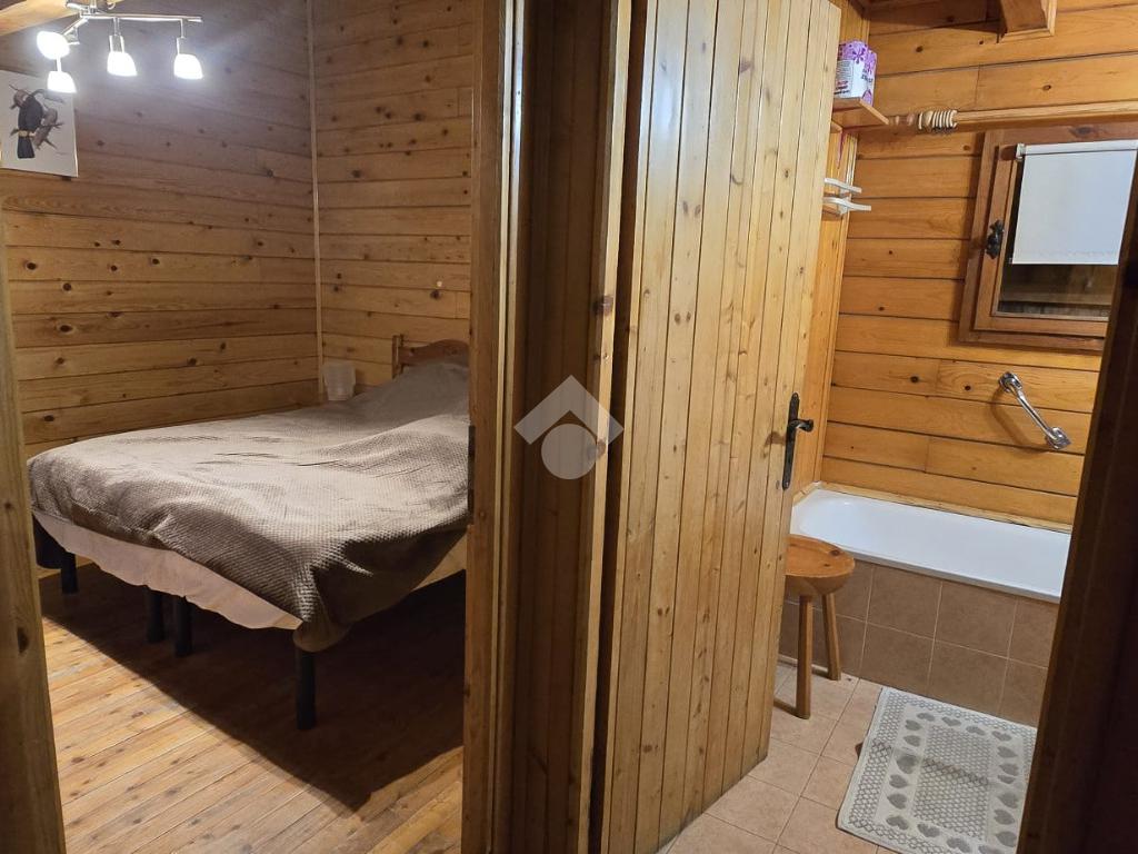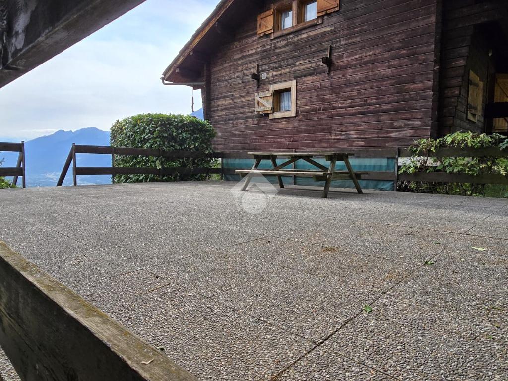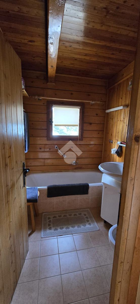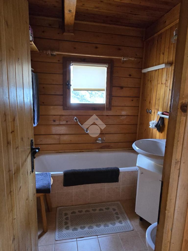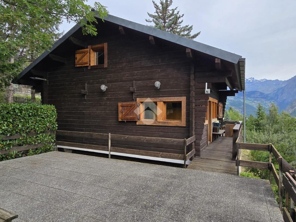 In Aosta, Frazione Entrebin, l'immobile immerso nel verde è completamente libero su quattro lati circondato da area verde privata. Si sviluppa su due livelli. Il piano terra ospita il soggiorno con angolo cottura caratterizzato da un camino a legna, una camera matrimoniale e un bagno con vasca. Tramite una scala interna di legno si accede al piano superiore il quale ospita una cameretta e un soppalco a vista sul soggiorno. Completa l'unità un ampio terrazzo, un balcone, una lavanderia e un deposito al piano seminterrato. Il tetto è stato è stato rifatto ne 2015. Il riscaldamento è autonomo a GPL.