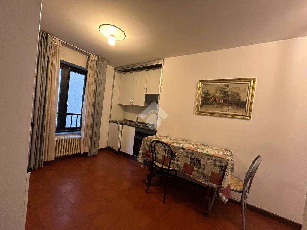 Pré-Saint-Didier, nei pressi delle Qc terme, l'alloggio è al primo piano con ascensore. Il soggiorno è unito all'angolo cottura. La zona notte ospita una camera matrimoniale con bagno. Il riscaldamento è semiautonomo a gasolio. Le spese condominiali sono basse. Possibilità di acquistare un box auto o un posto auto.